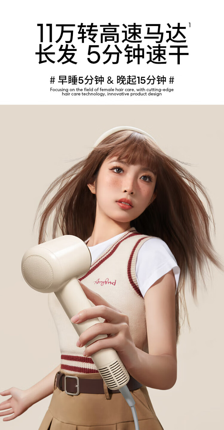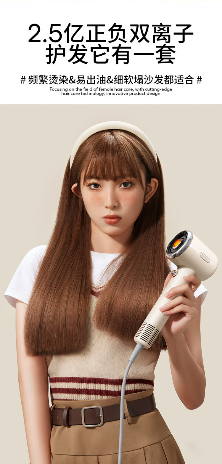 Straight-forward high-speed hair dryer for home high-wind negative ion hair care low-noise quick-drying hair dryer selection gift box birthday gift for girlfriend national subsidy S1 white low-end version