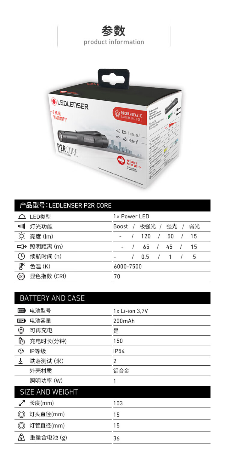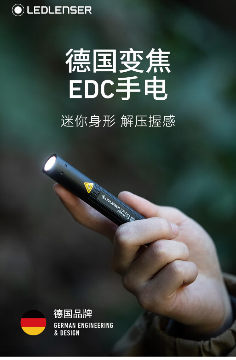LED LENSER German strong light flashlight P2R small mini zoom EDC portable waterproof charging high brightness long shot