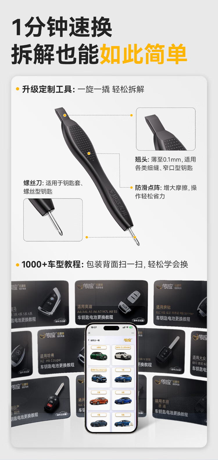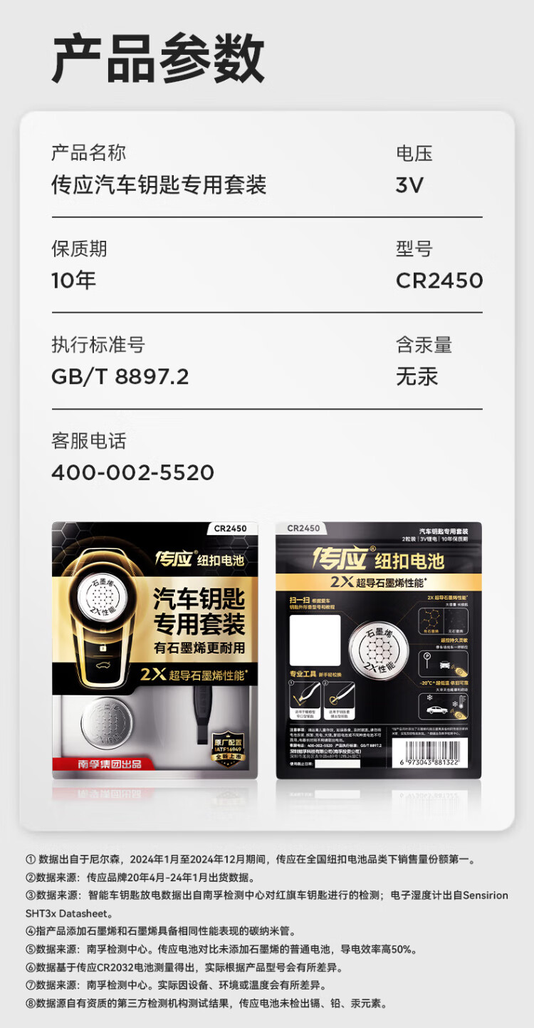Chuanying Nanfu CR2450 graphene button battery 2 pieces, special for car keys, built-in crowbar + screwdriver, suitable for BMW 3 Series/Cadillac CT4/Buick LaCrosse