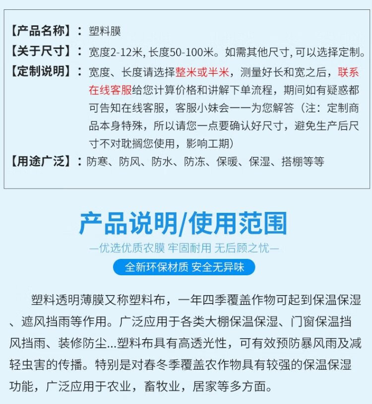 Wanhe plastic film thickened greenhouse film rainproof cloth transparent plastic cloth waterproof cloth dustproof insulation film 8 wires 2*2 meters