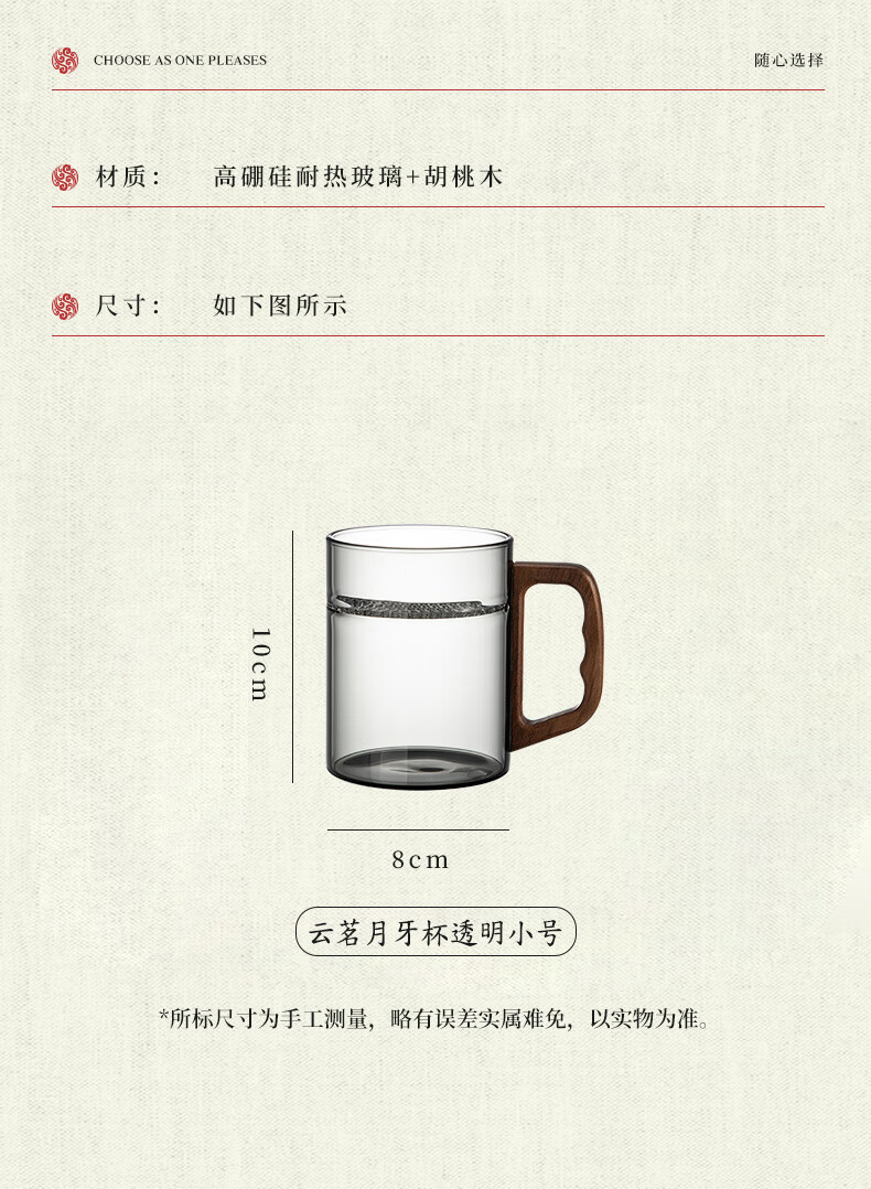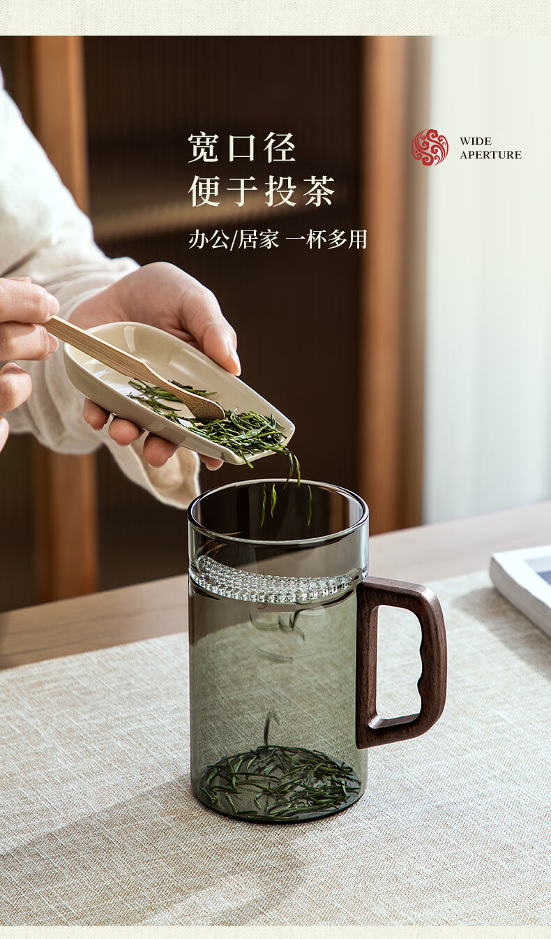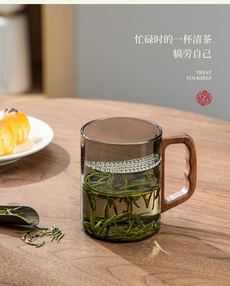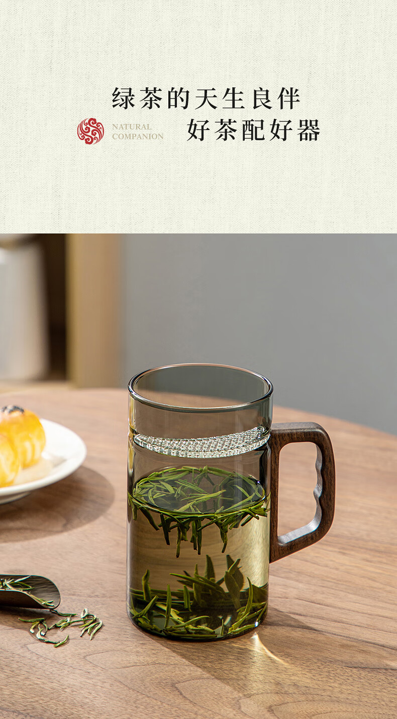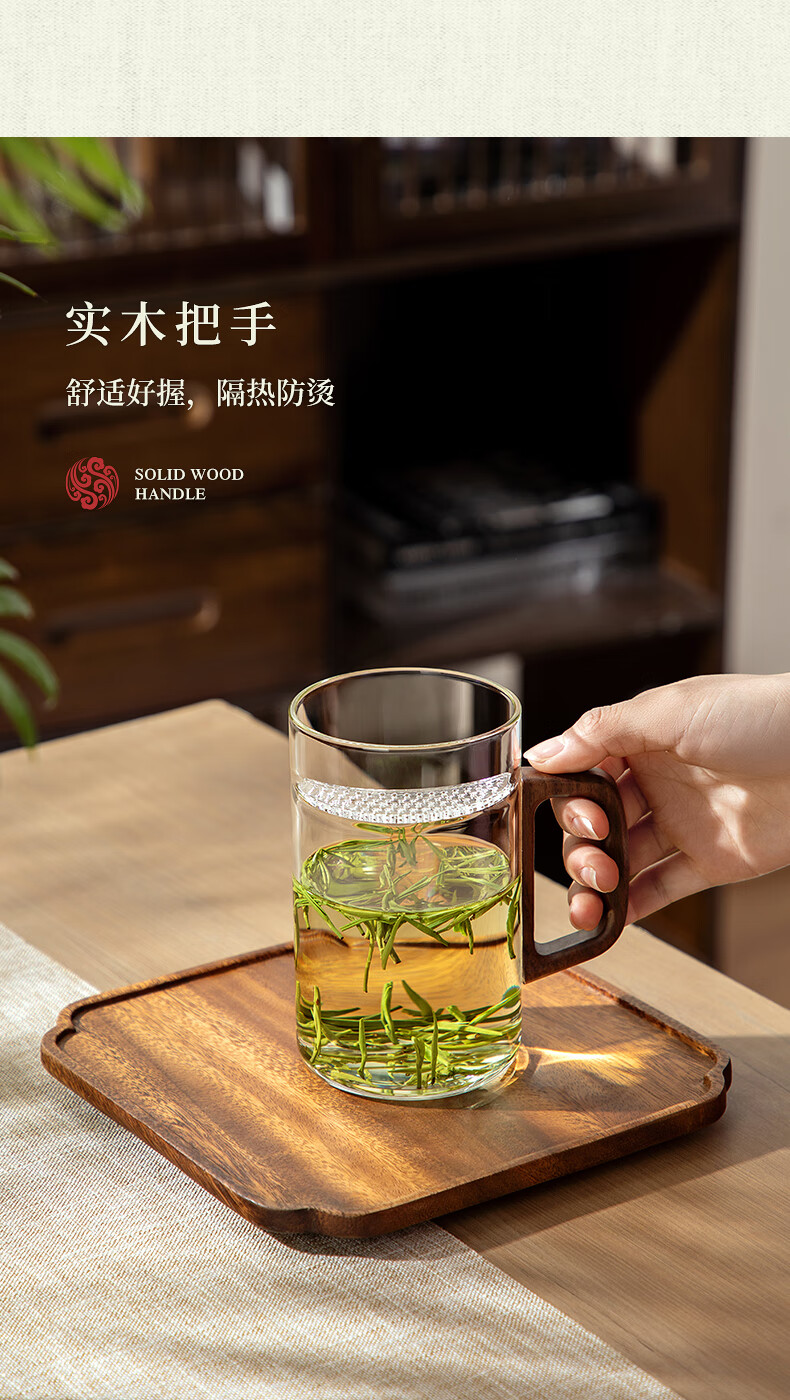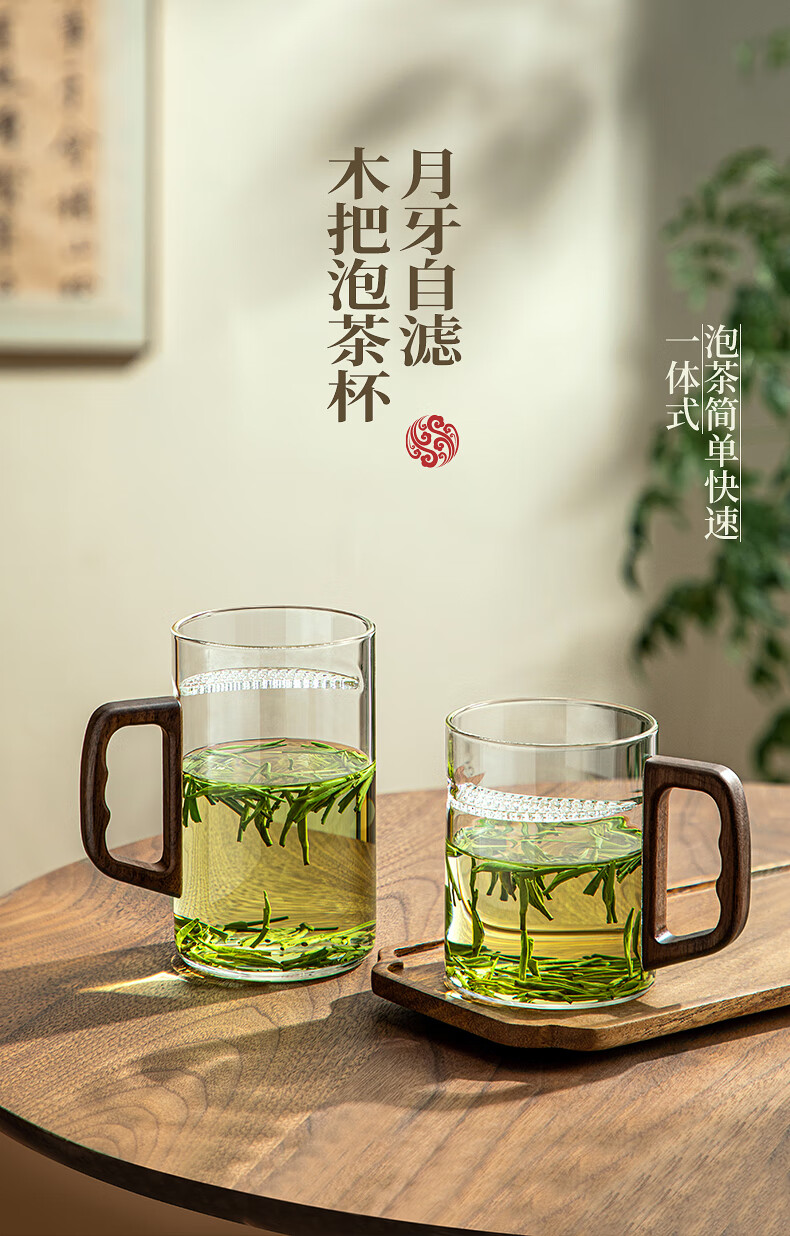Niye tea cup glass water cup personal special tea making crescent green tea cup office tea cup with handle high borosilicate heat-resistant men