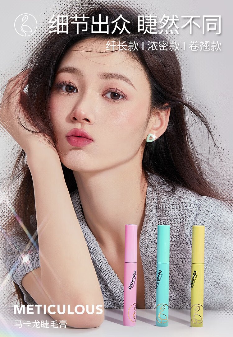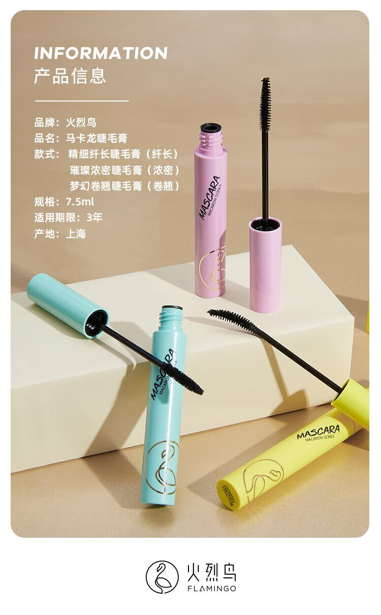 Flamingo 3-pack Macaron mascara, long, thick and curling, not easy to smudge 7.5ml*3 as a gift for girls