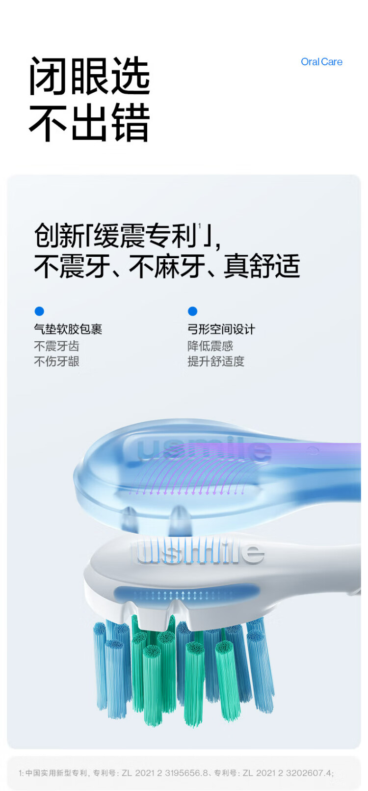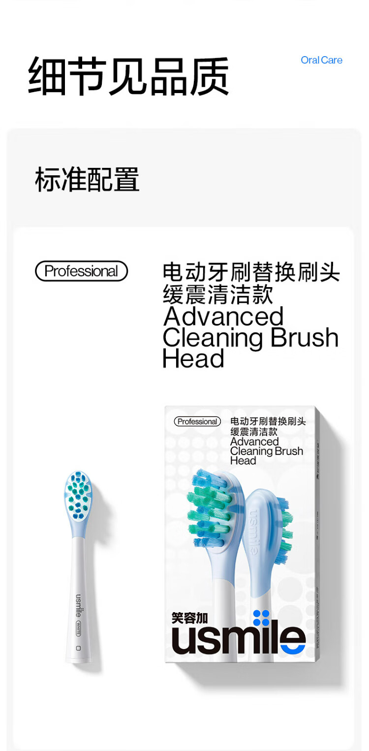 Usmile smile plus brush head cushioning basic cleaning model - 2 replacement heads for P10P20PRO toothbrush heads for adults