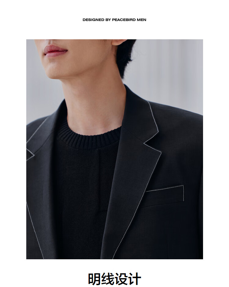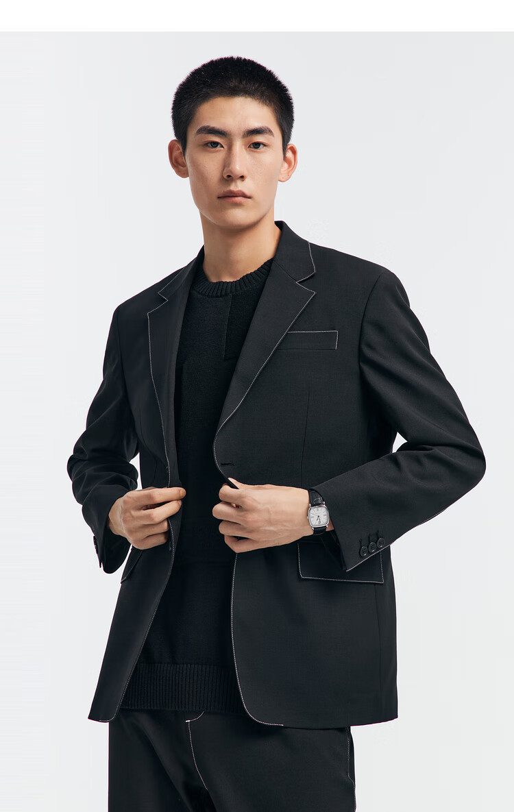 PEACEBIRD Men's Topstitch Suit Suit Men's Casual Suit Casual Jacket Suit Pants (Straight) S