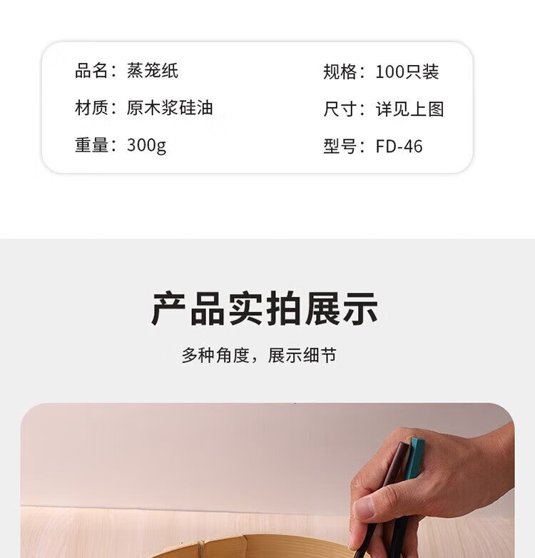 Baijie steamer paper bun pad steamed bun paper non-stick basket paper disposable steamer paper 100 sheets diameter 32cm