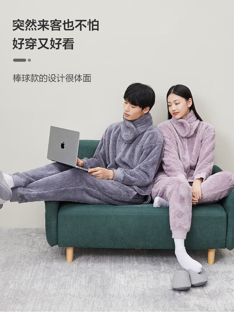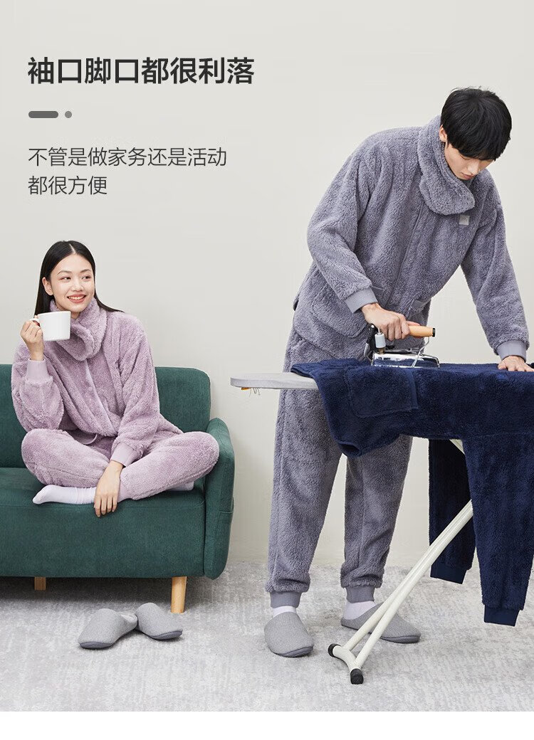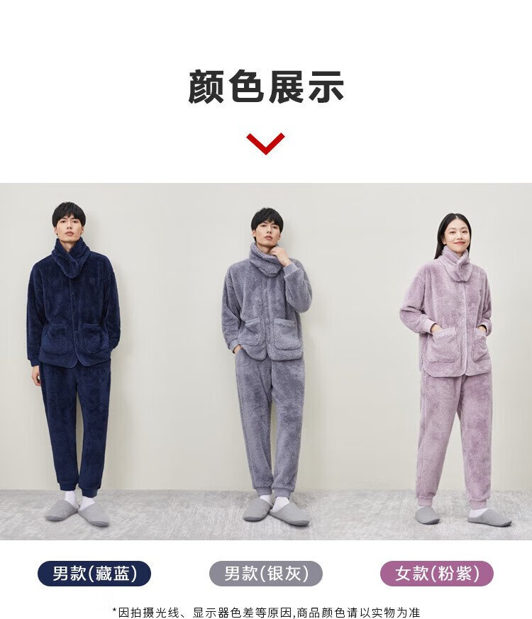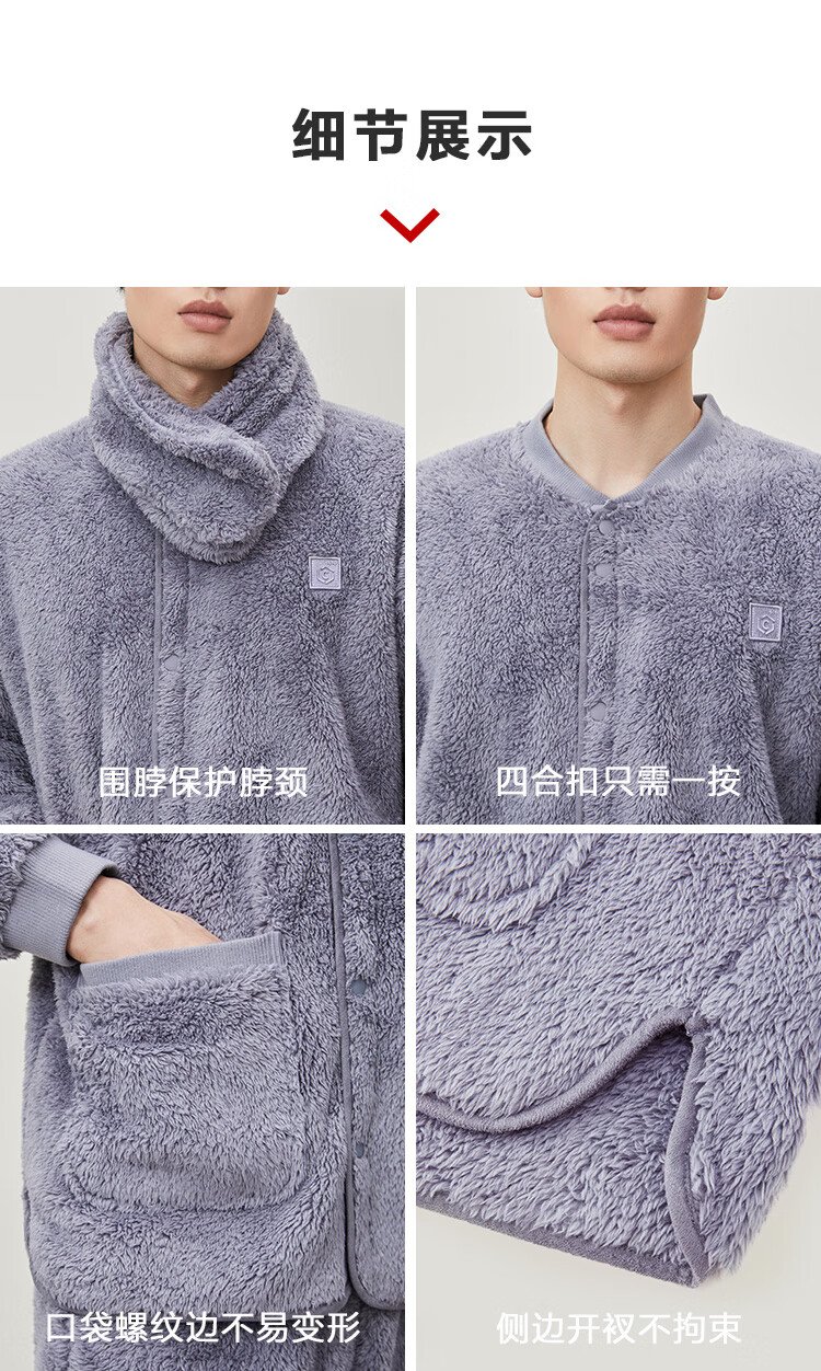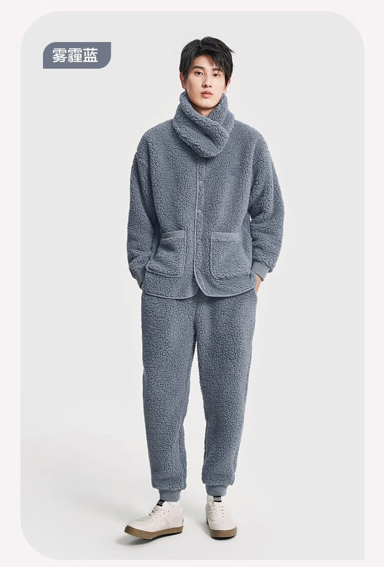 Made in Tokyo, antibacterial and antistatic, coral velvet pajamas with collar, men's pajamas, thickened warm home clothes, haze blue L