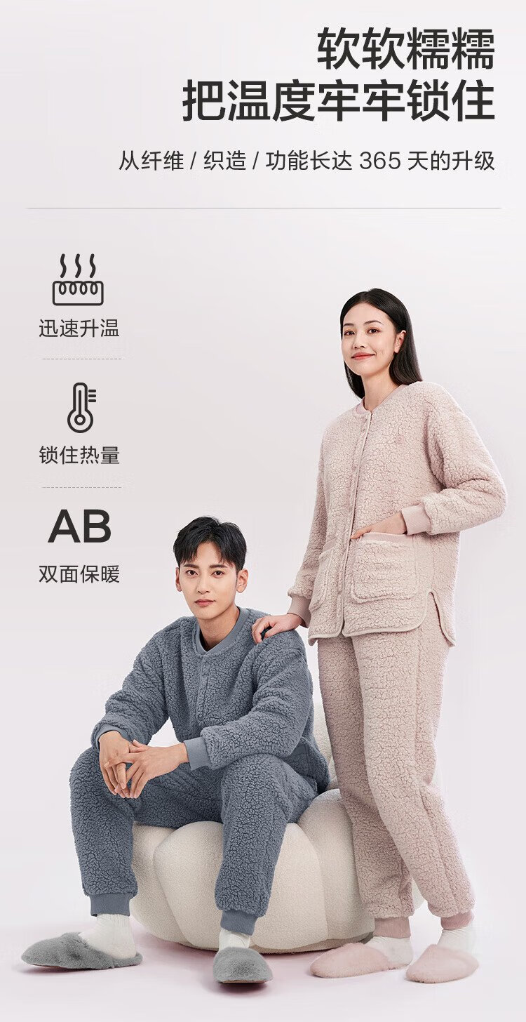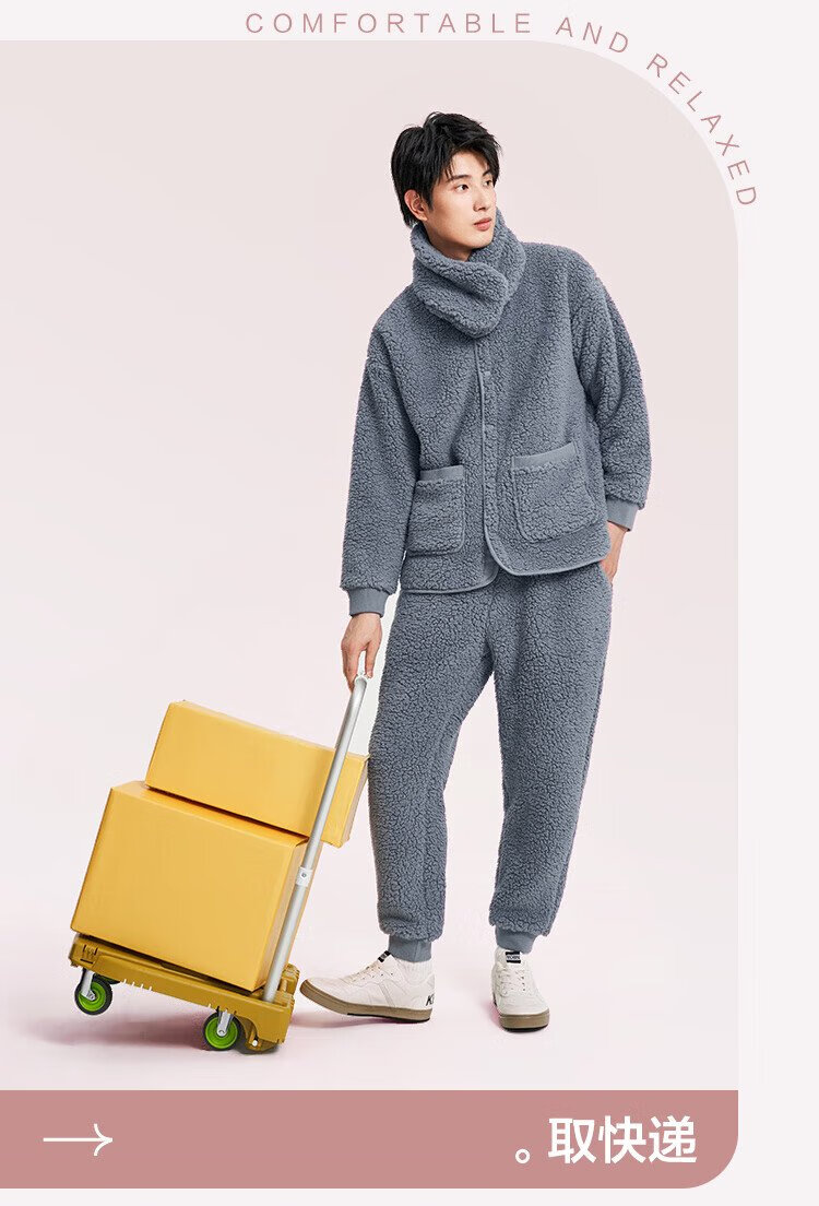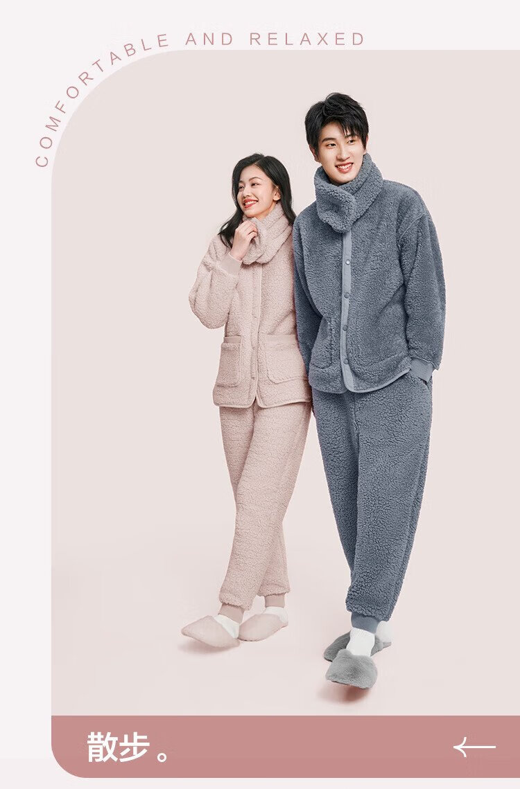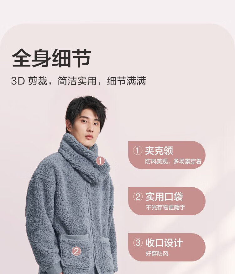 Made in Tokyo, antibacterial and antistatic, coral velvet pajamas with collar, men's pajamas, thickened warm home clothes, haze blue L