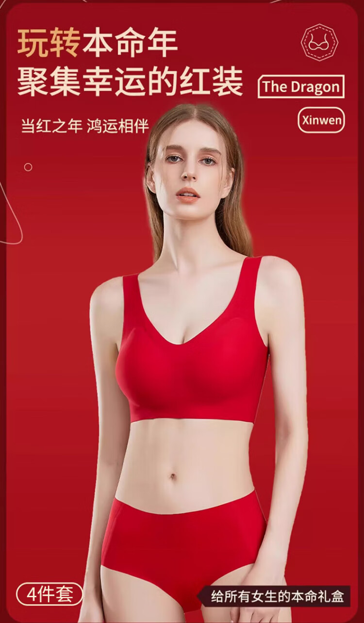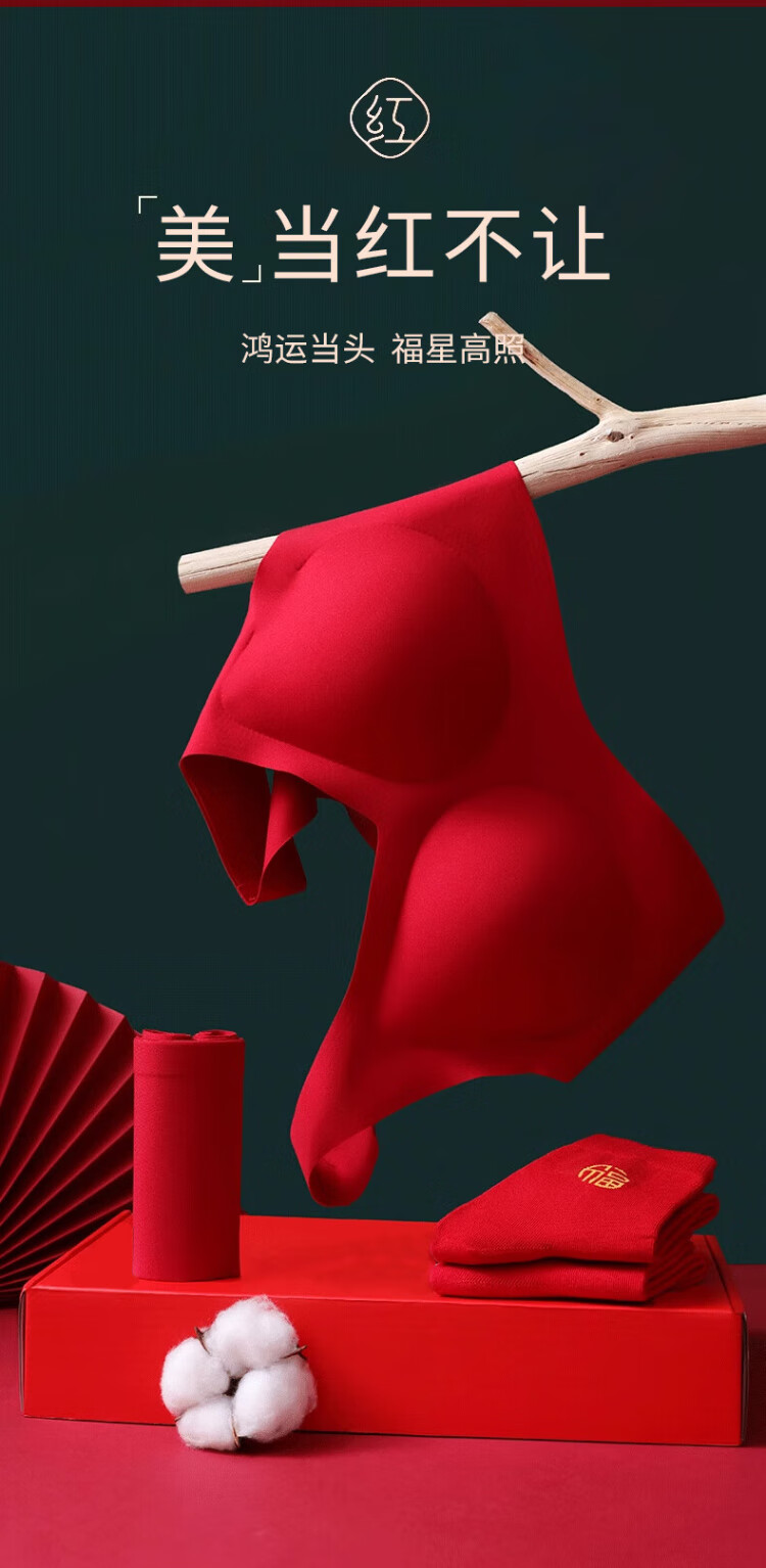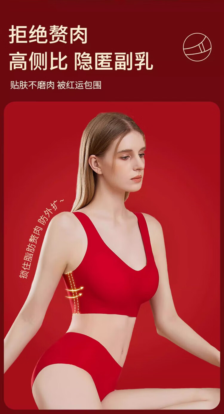 Langsha underwear women's big red zodiac year underwear set seamless push-up anti-sagging no steel ring red bra