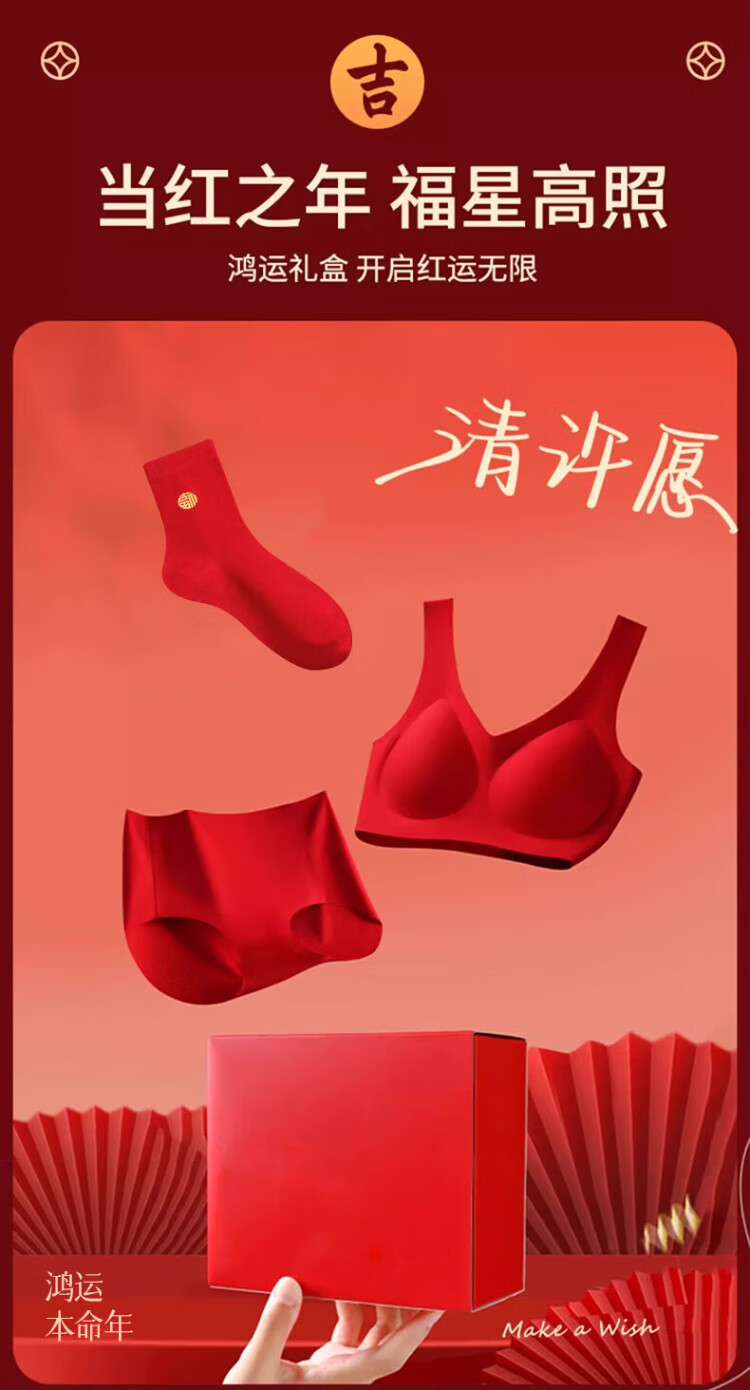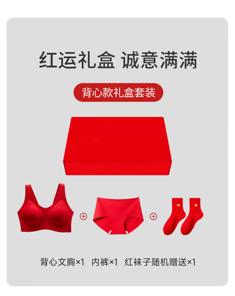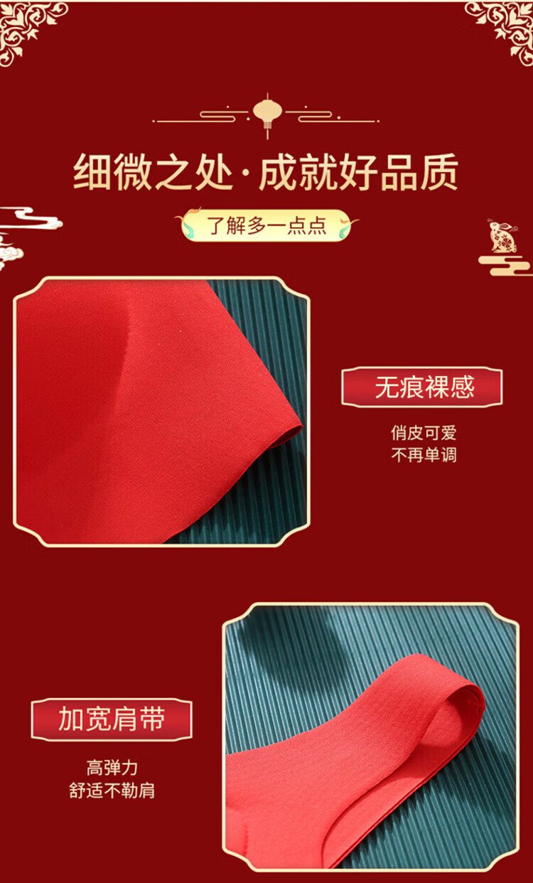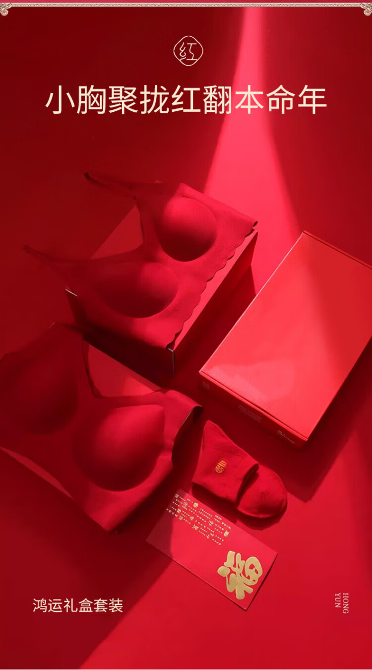 Langsha underwear women's big red zodiac year underwear set seamless push-up anti-sagging no steel ring red bra