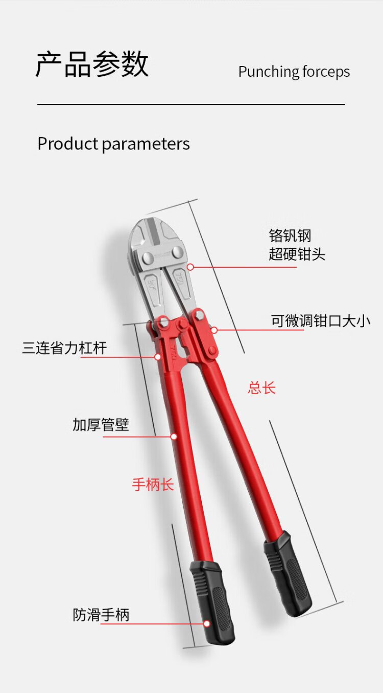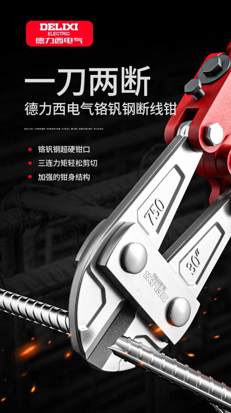 Delixi bolt cutter steel bar cutter labor-saving powerful scissors to cut steel wire iron wire large pliers cutting pliers steel bar scissors cutting lock pliers