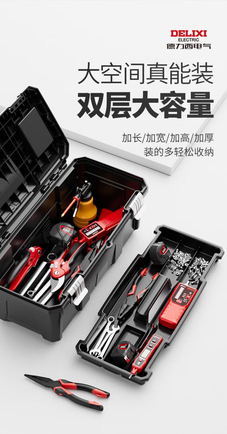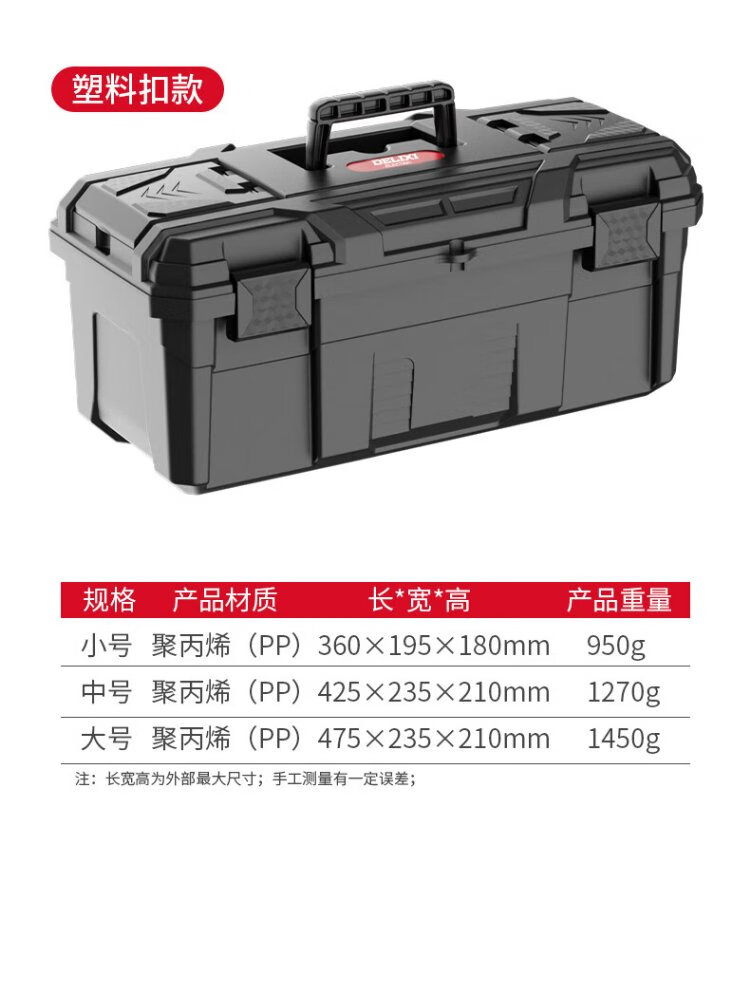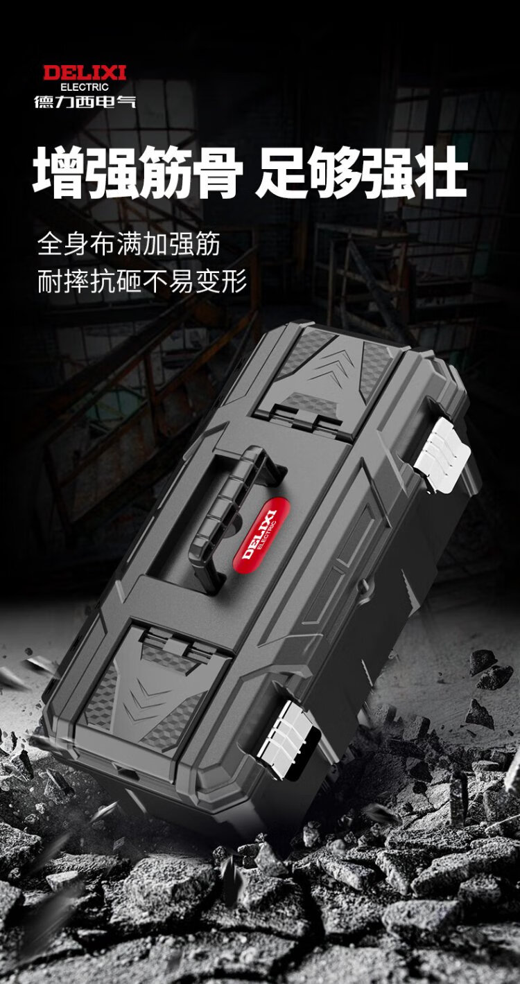 Delixi Black King Kong Thickened Tool Box Storage Box Hardware Large Industrial Grade Home Portable Car Multifunctional Maintenance