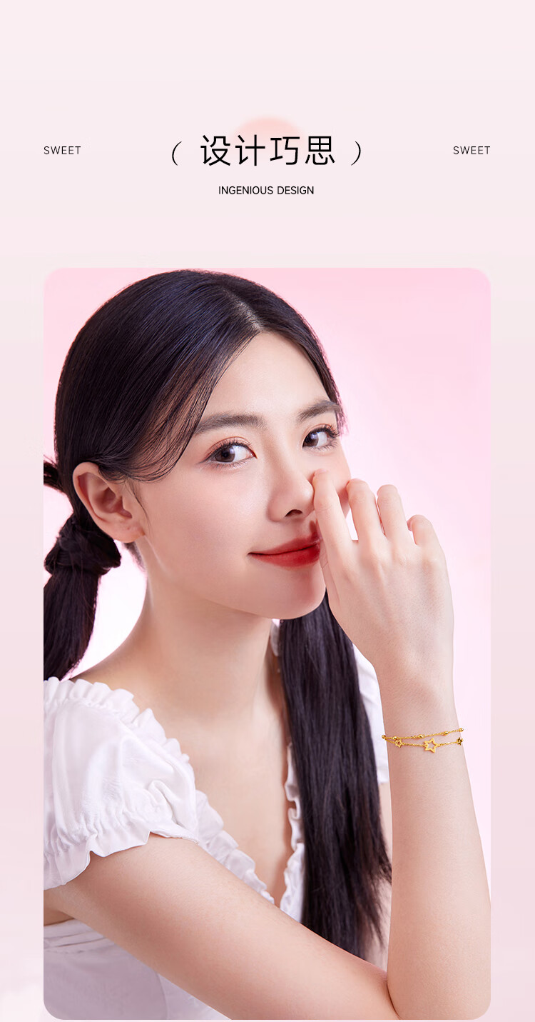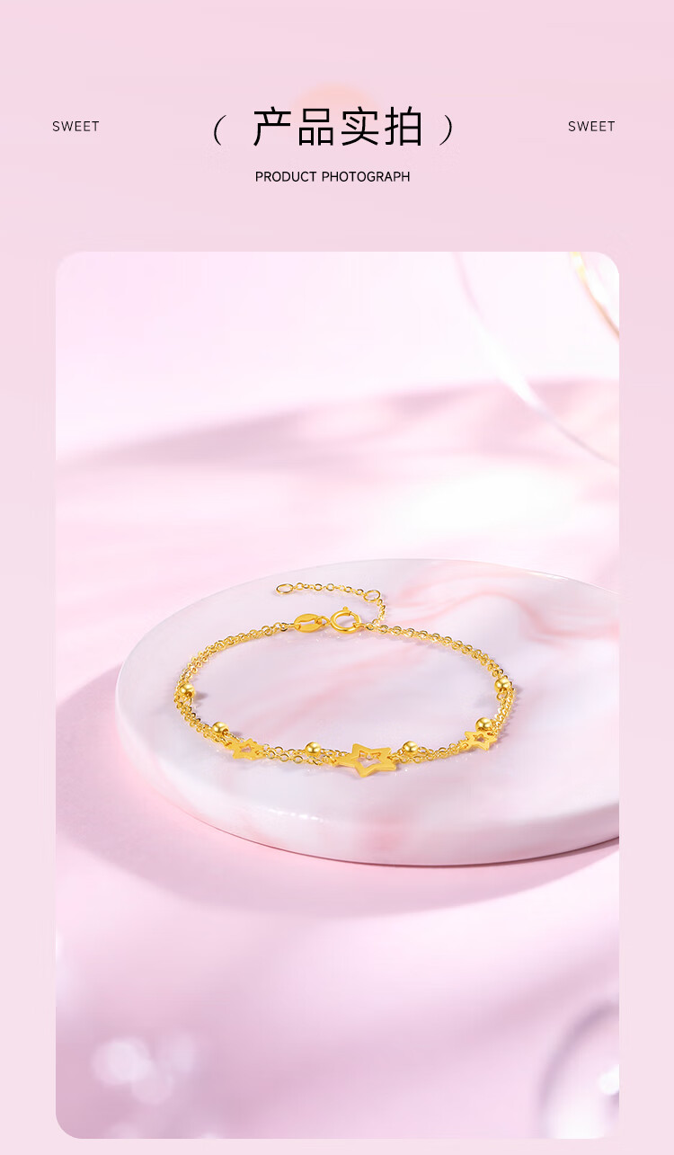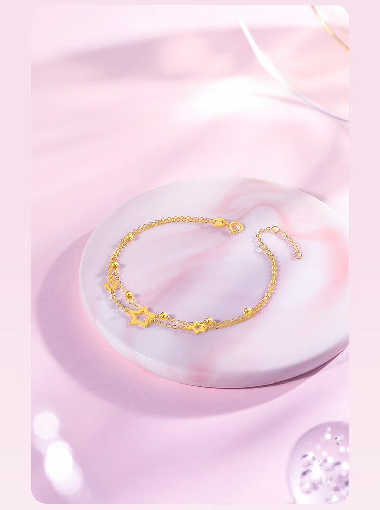 Saturday Fortune Yellow 18K Gold Bracelet Female Star Double Layer Color Gold Bracelet Birthday Gift C0712355 16+3cm