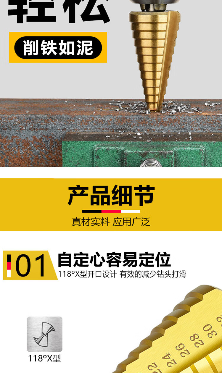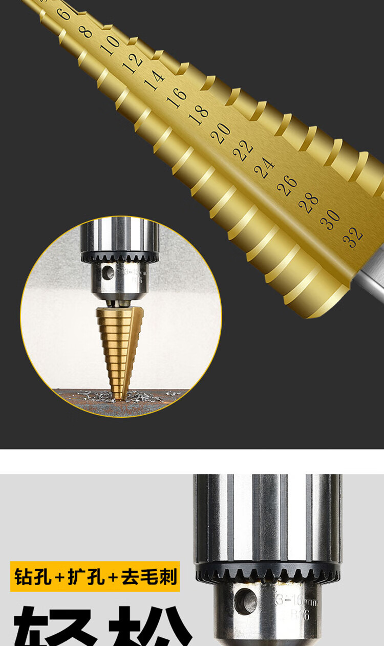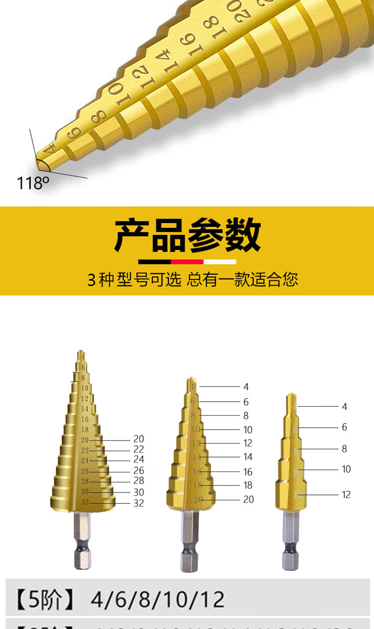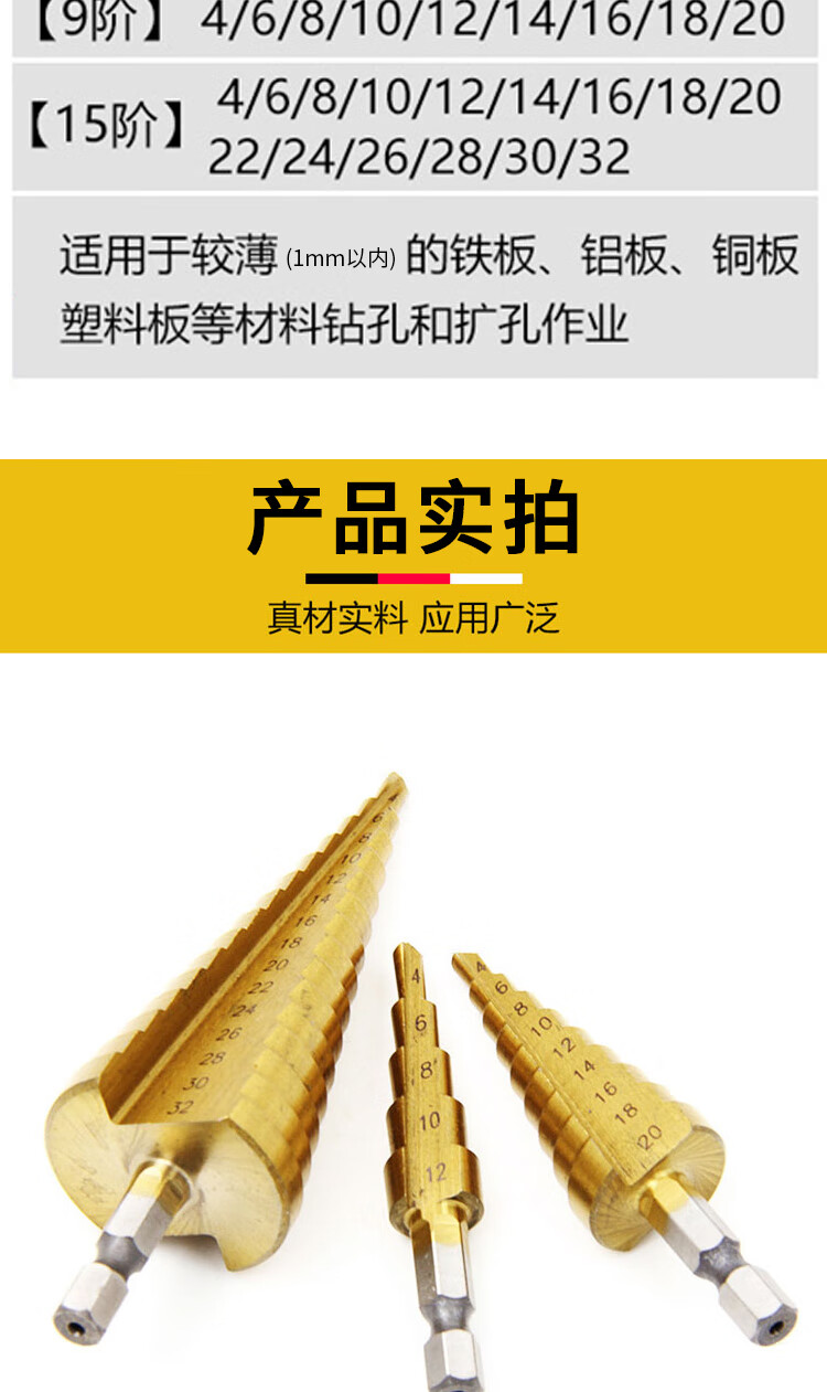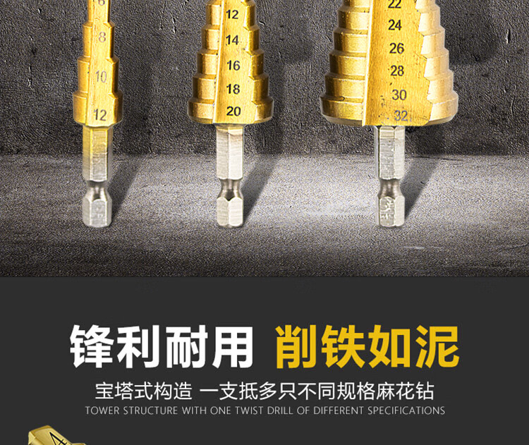 Hasdick hexagonal shank straight groove step drill pagoda drill step drill reaming drill bit GY-14 15 steps 4-32mm