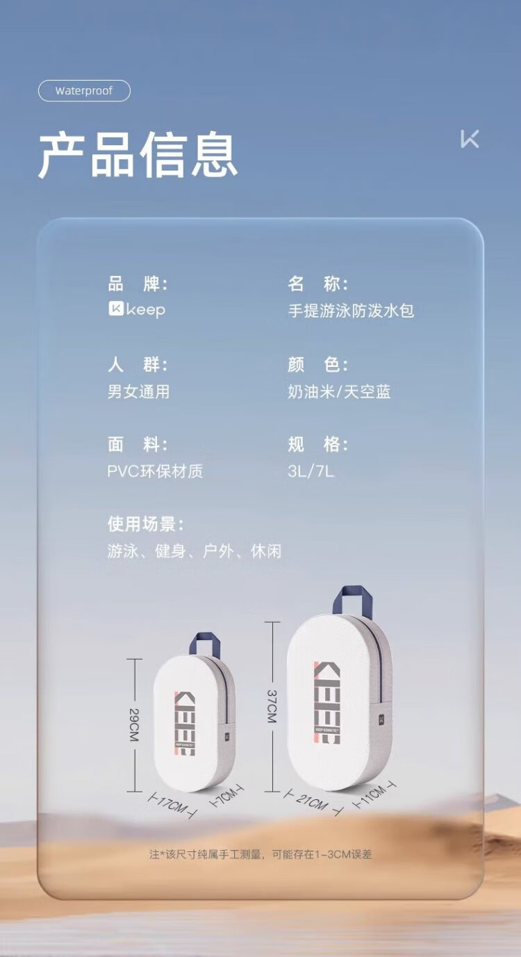 Keep Swimming Bag Water-Repellent Men's and Women's Fitness Toilet Bag Portable Storage Large Capacity Portable Beach Bag Swimming Equipment