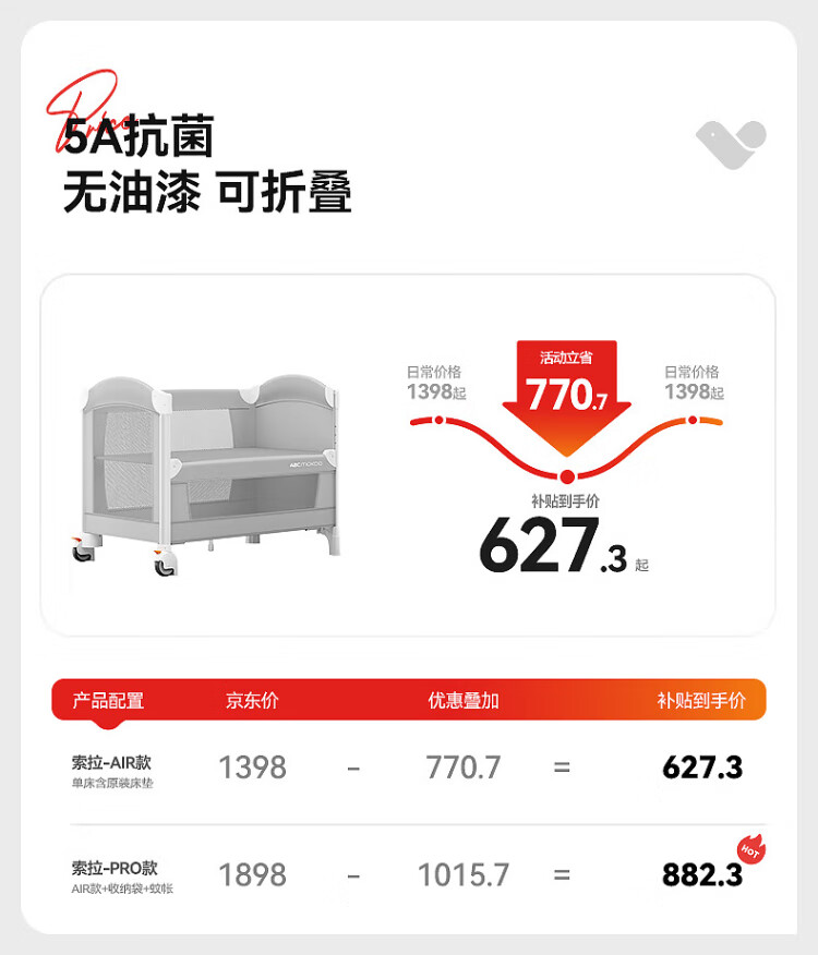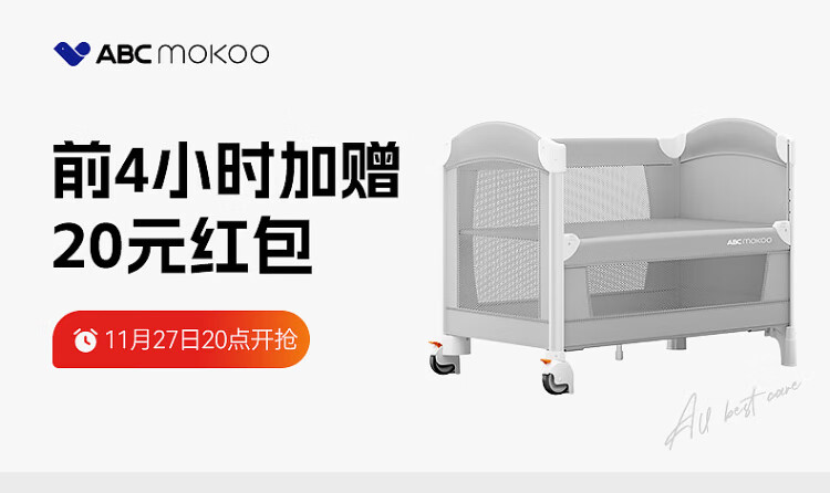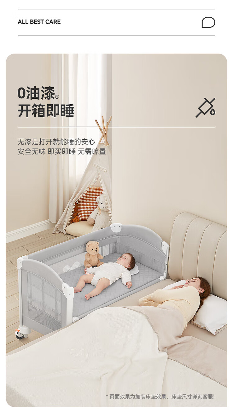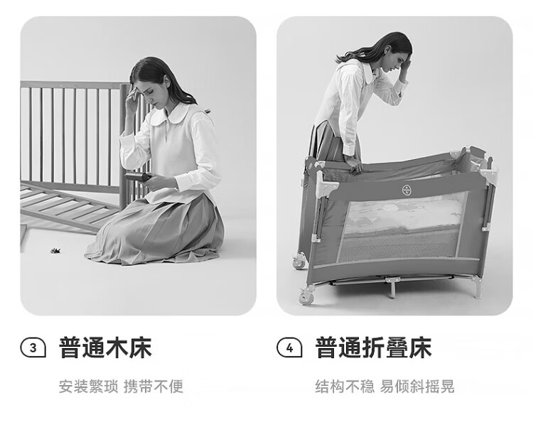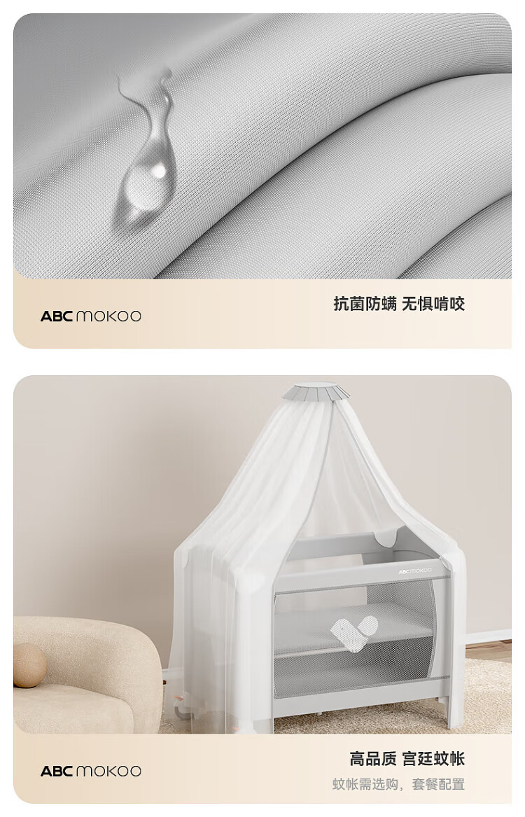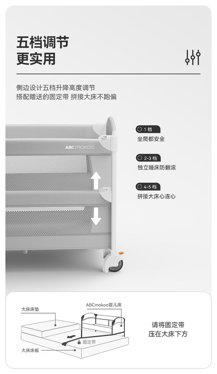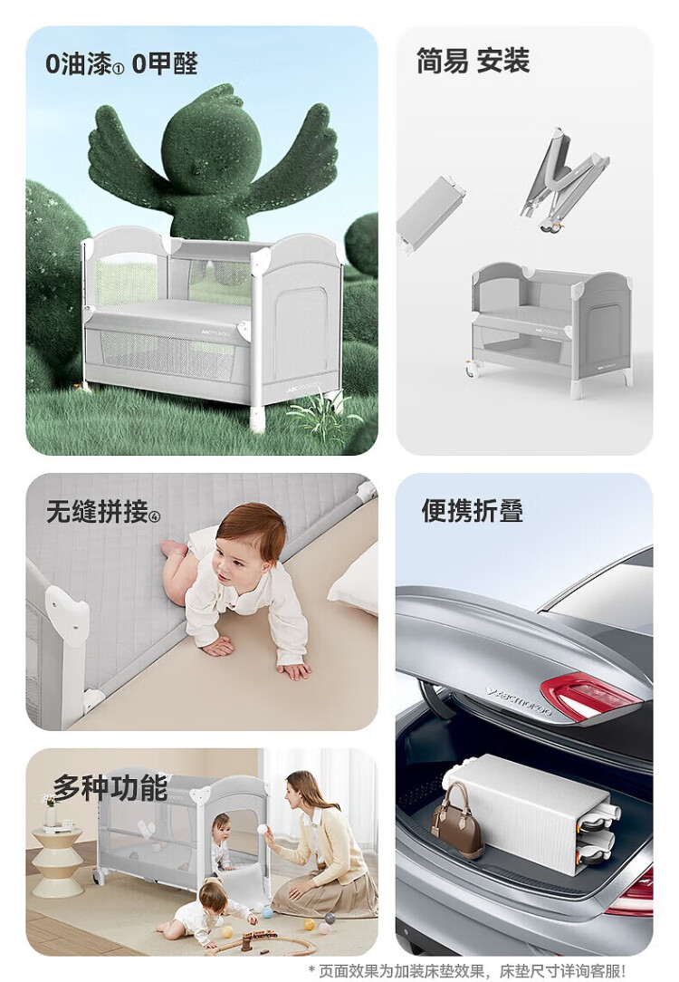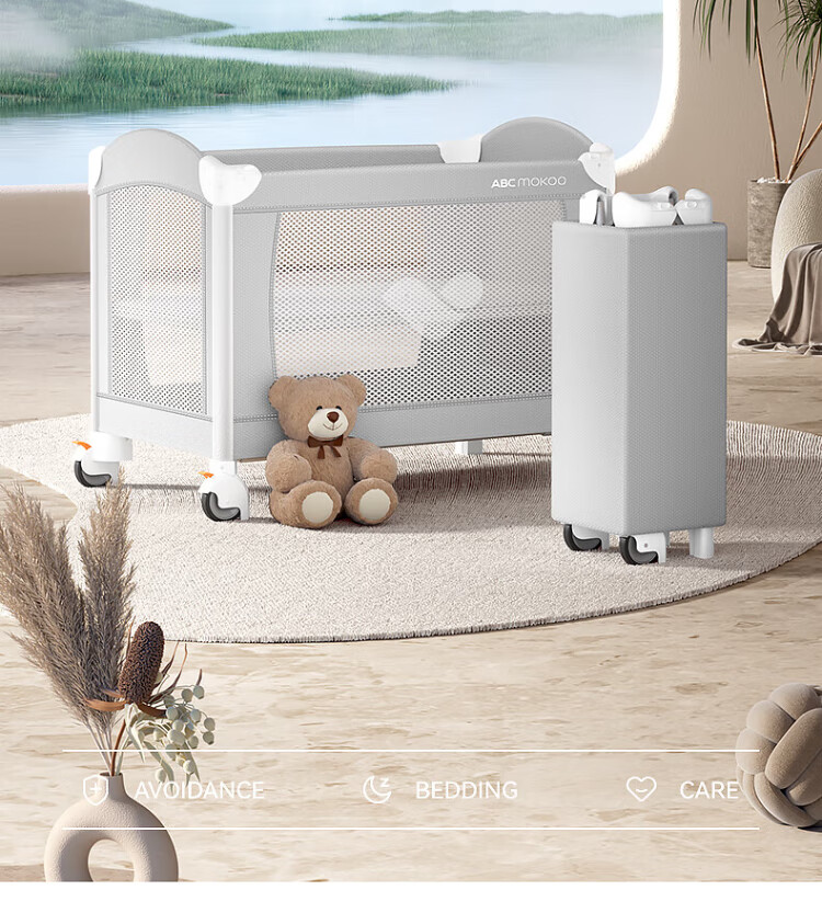 ABCMOKOO Solar folding crib spliced large bed multi-functional newborn removable crib-Morandi Gray AIR model