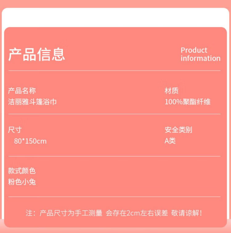 Jie Liya (Grace) Class A bath towel, children's hooded cape bathrobe, super soft absorbent bath towel, hooded bath towel, quick-drying 150*80cm