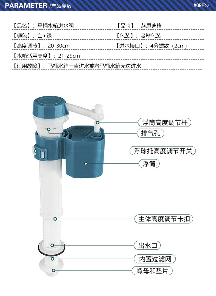 Hesdige toilet water tank accessories water inlet valve water tank accessories water valve universal retractable suitable for 21-29cm water tank HHW-492