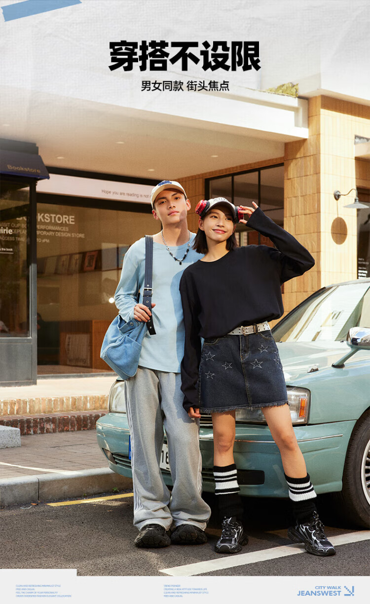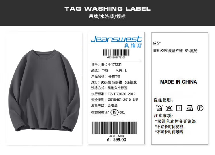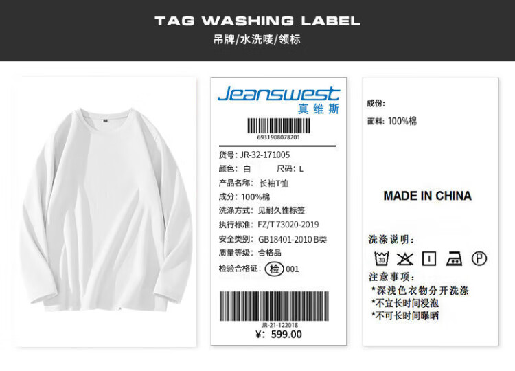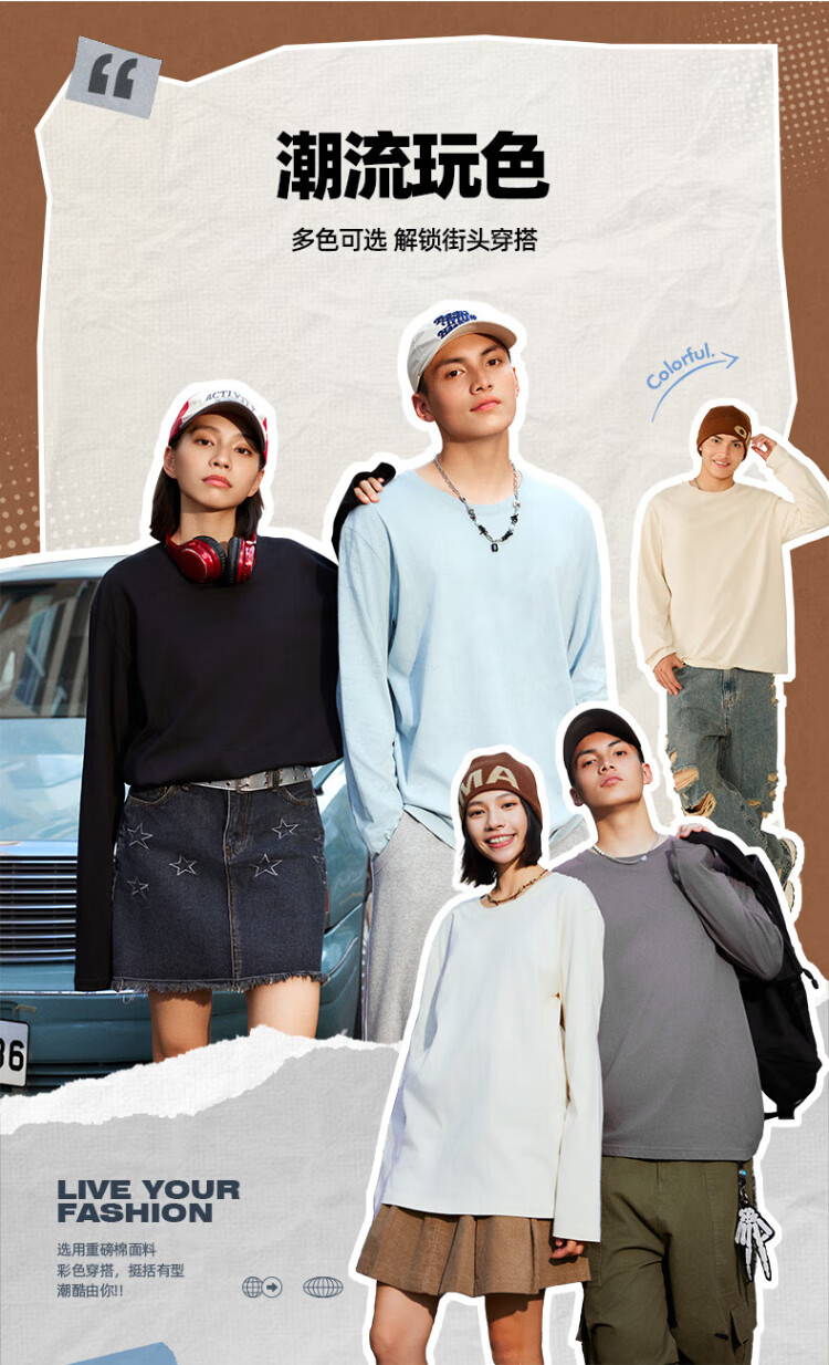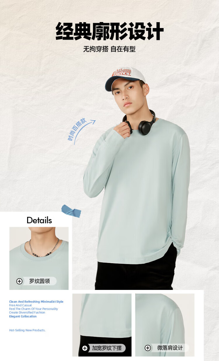 Jeanswest Japanese long-sleeved T-shirt for men 220g heavy cotton men's bottoming shirt for boys loose large size solid color inner wear