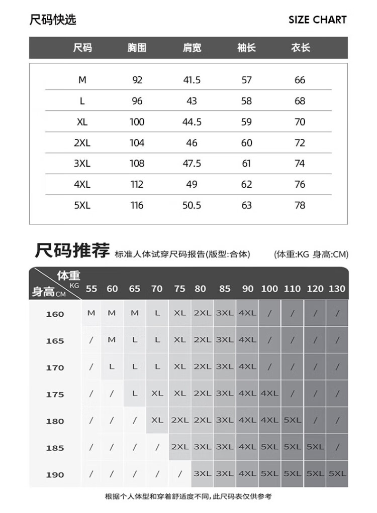 China (cm) 160-165/84-86 165-170 / 88-90 167-172 / 92-96 168-173 / 98-102 170-176 / 106-110