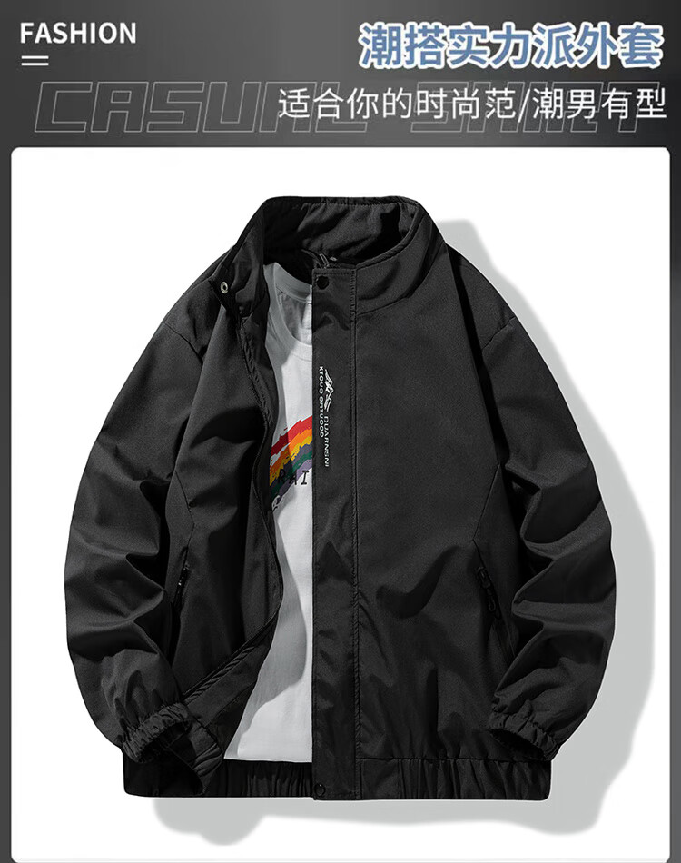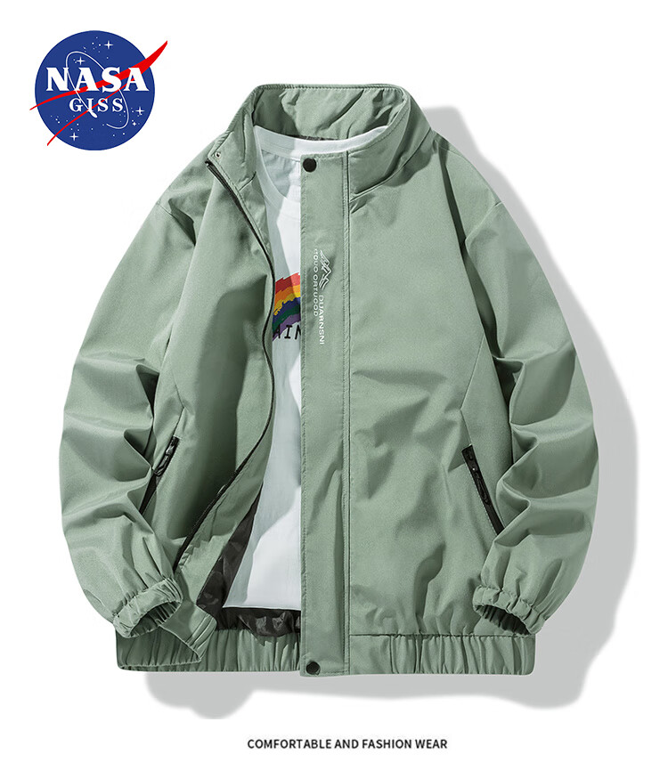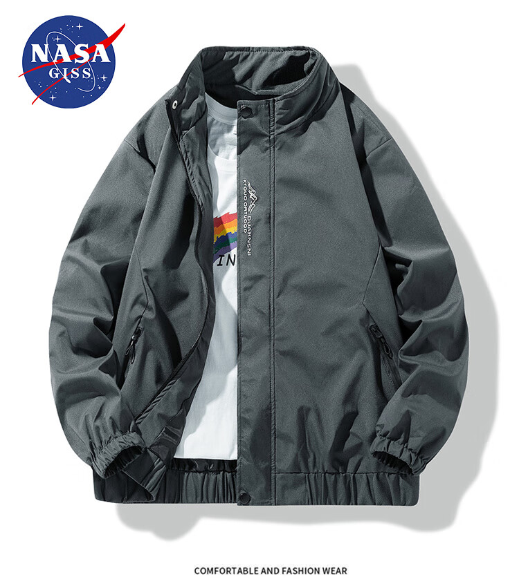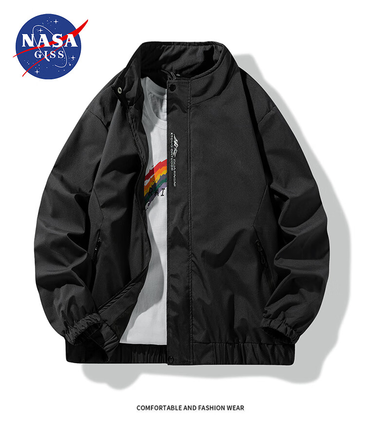NASA GISS official trendy brand jacket men's fashionable spring and autumn stand-up collar loose casual versatile jacket men black 2XL