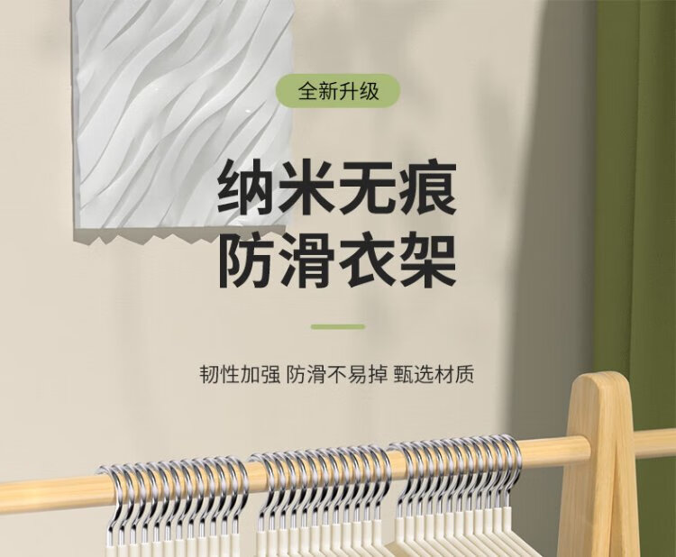 Forty Thousand Kilometers Clothes Rack Home Clothes Hanger Anti-slip Seamless Clothes Drying Rack Clothes Rack Coat Support Dry and Wet Use 20 Count White