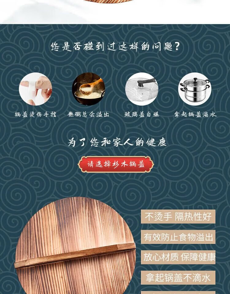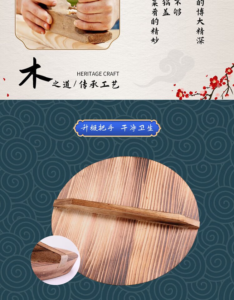 Baijie fir pot lid household wooden pot lid solid wood lid round wok lid large pot lid water tank lid 32cm