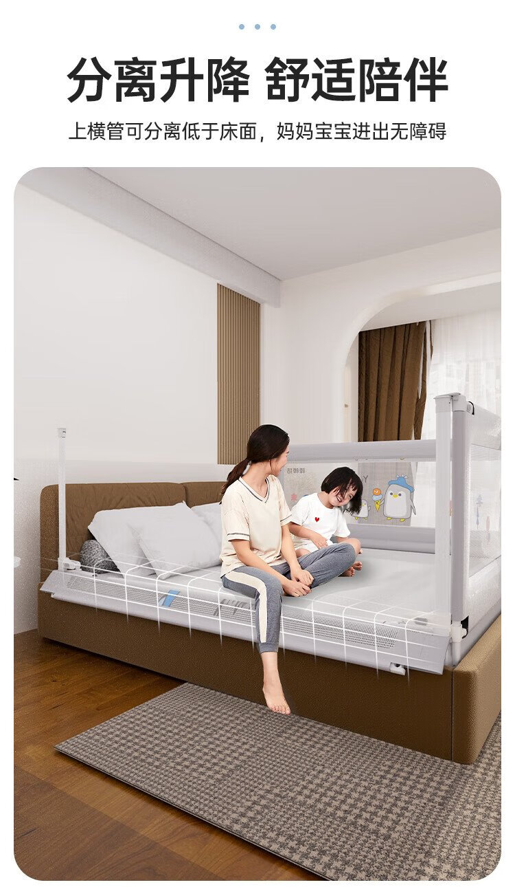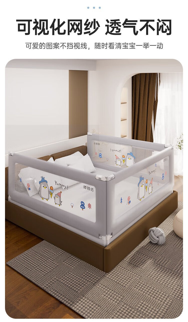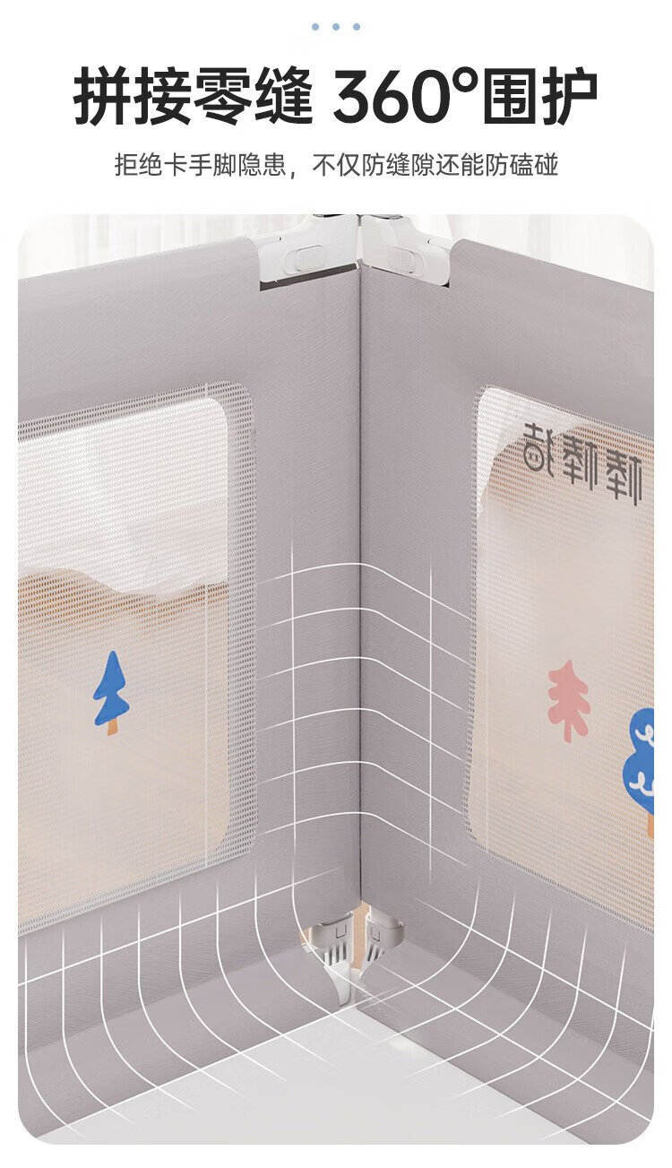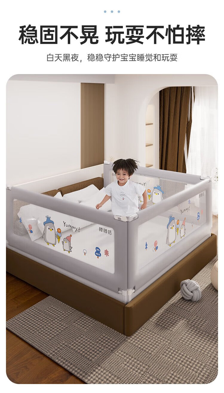 Bed fence anti-fall bed guardrail bedside fence baby anti-fall bed guardrail 1.5+2+2 meters three-sided installation