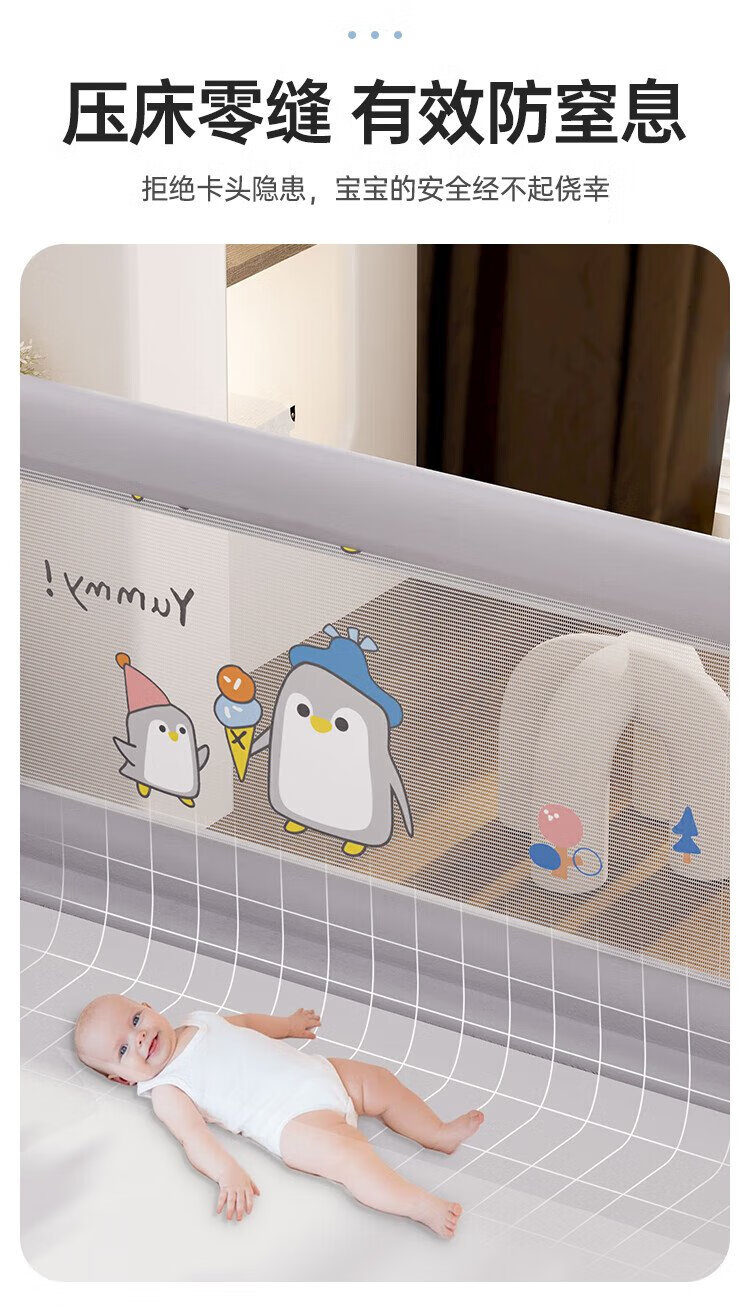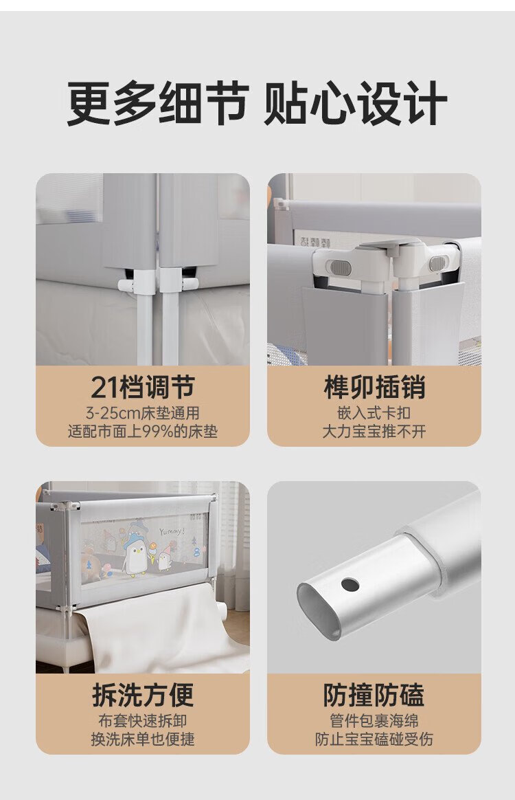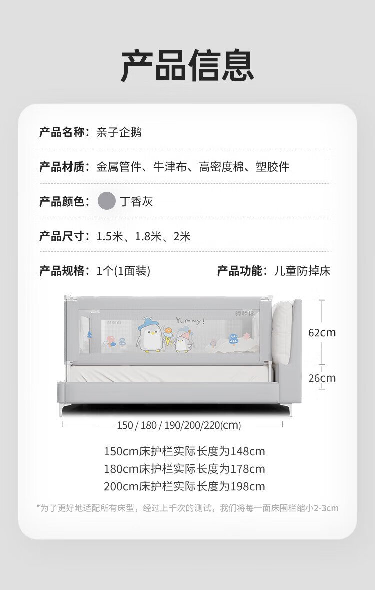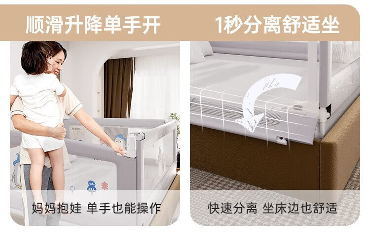Bed fence anti-fall bed guardrail bedside fence baby anti-fall bed guardrail 1.5+2+2 meters three-sided installation