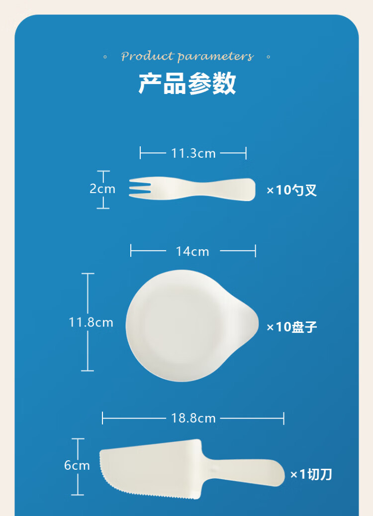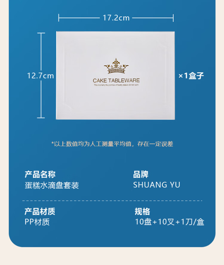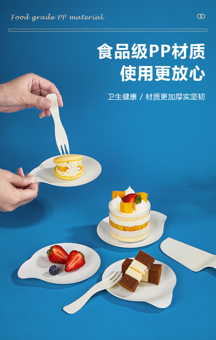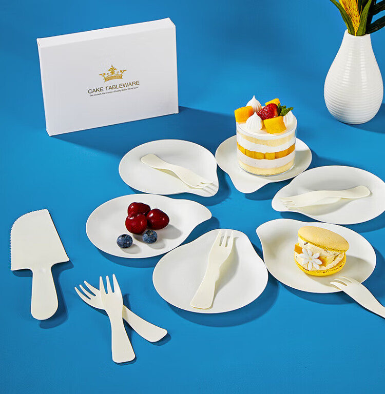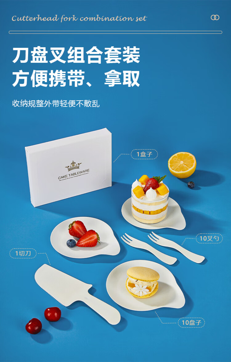 SHUANG YU disposable cake tableware 10 servings disposable cake plate fork birthday cake knife and fork set tray plate
