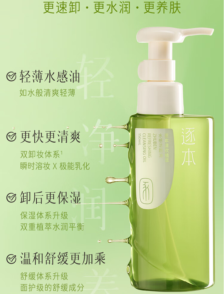 Zhuben Qinghuan plant extract water-based cleansing oil 150ml is given as a gift to remove eye and lip mild sensitive skin and can be used in the same style as Tanjian