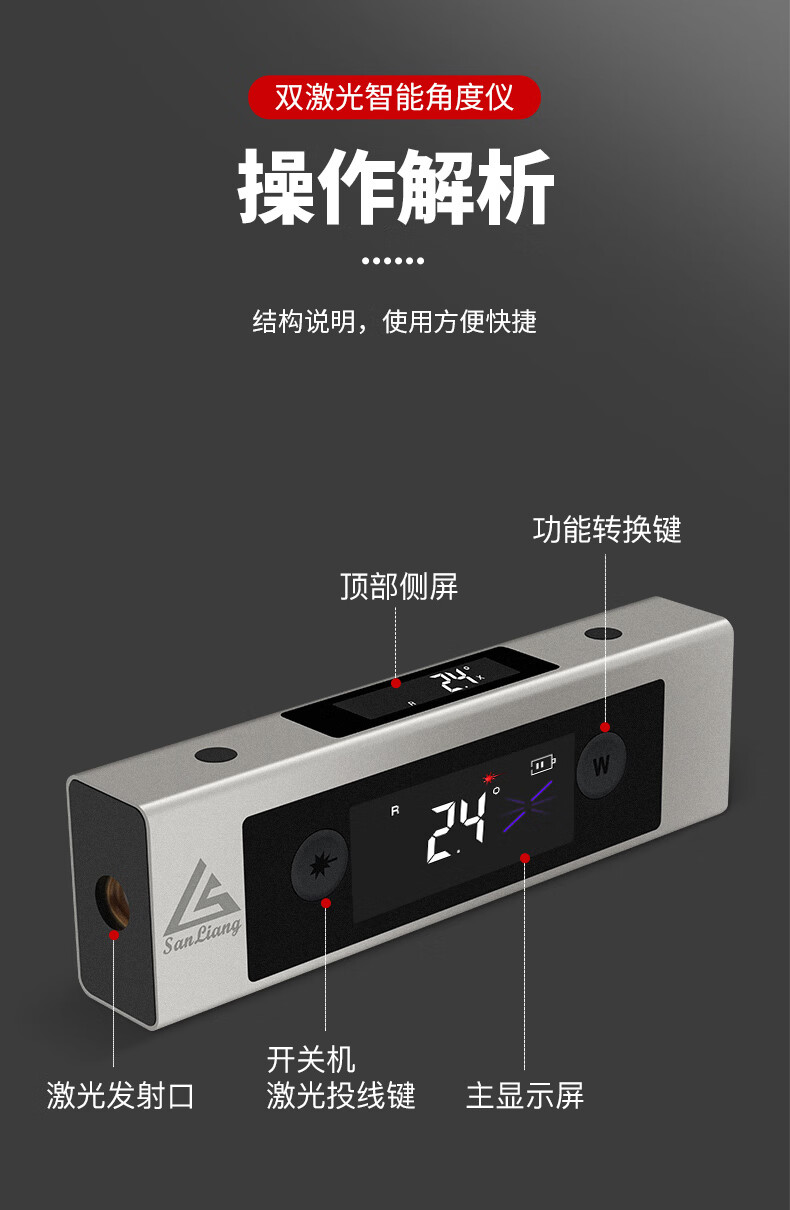 Three-quantity laser inclinometer electronic level small portable infrared high-precision measuring instrument JD0015 double-sided laser (cross, one-word laser)