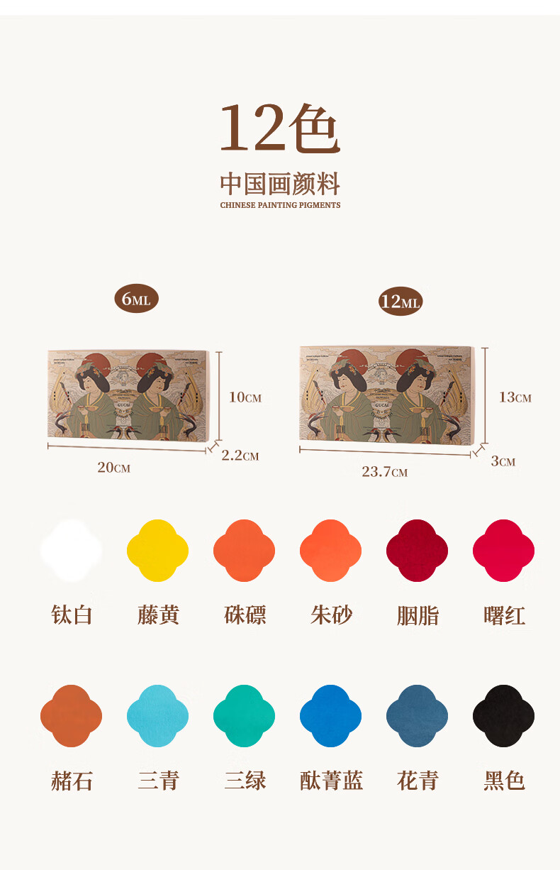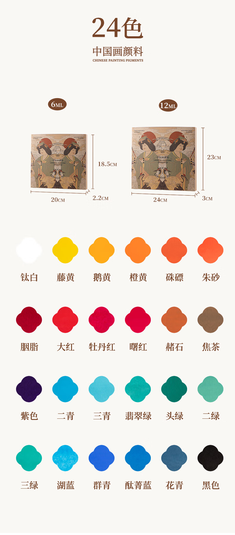 Rubens (PaulRubens) 24-color tubular Chinese painting pigment ancient Chinese series watercolor gouache pigment set 6ML/piece children's Chinese ink painting tools 0138001029