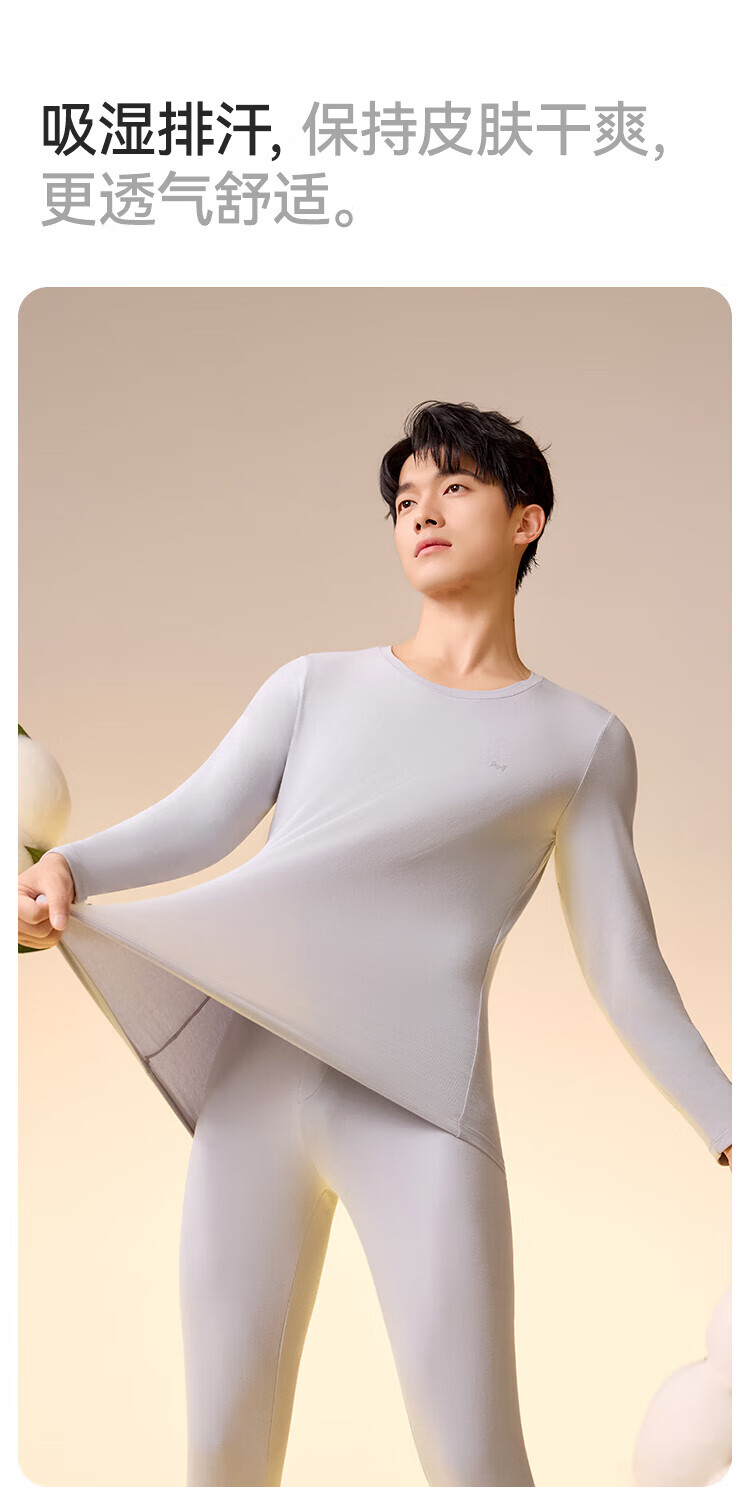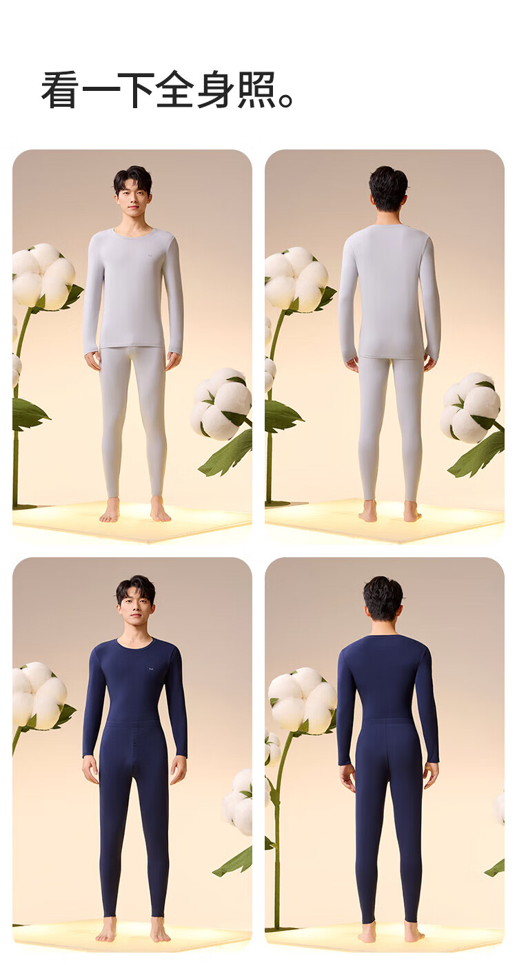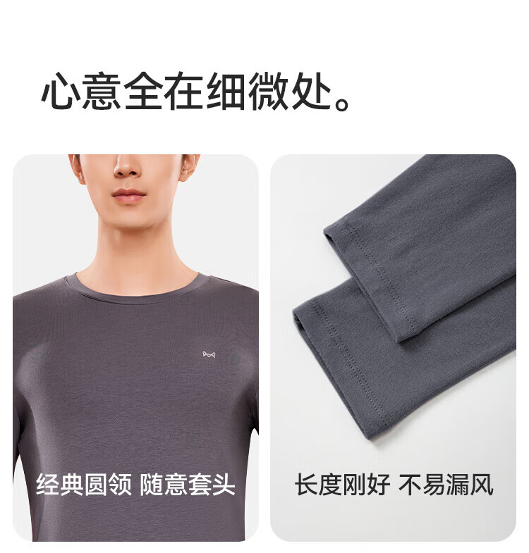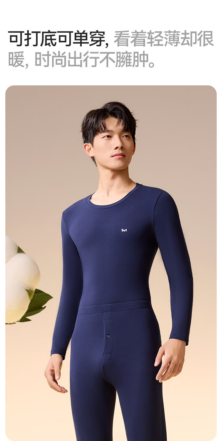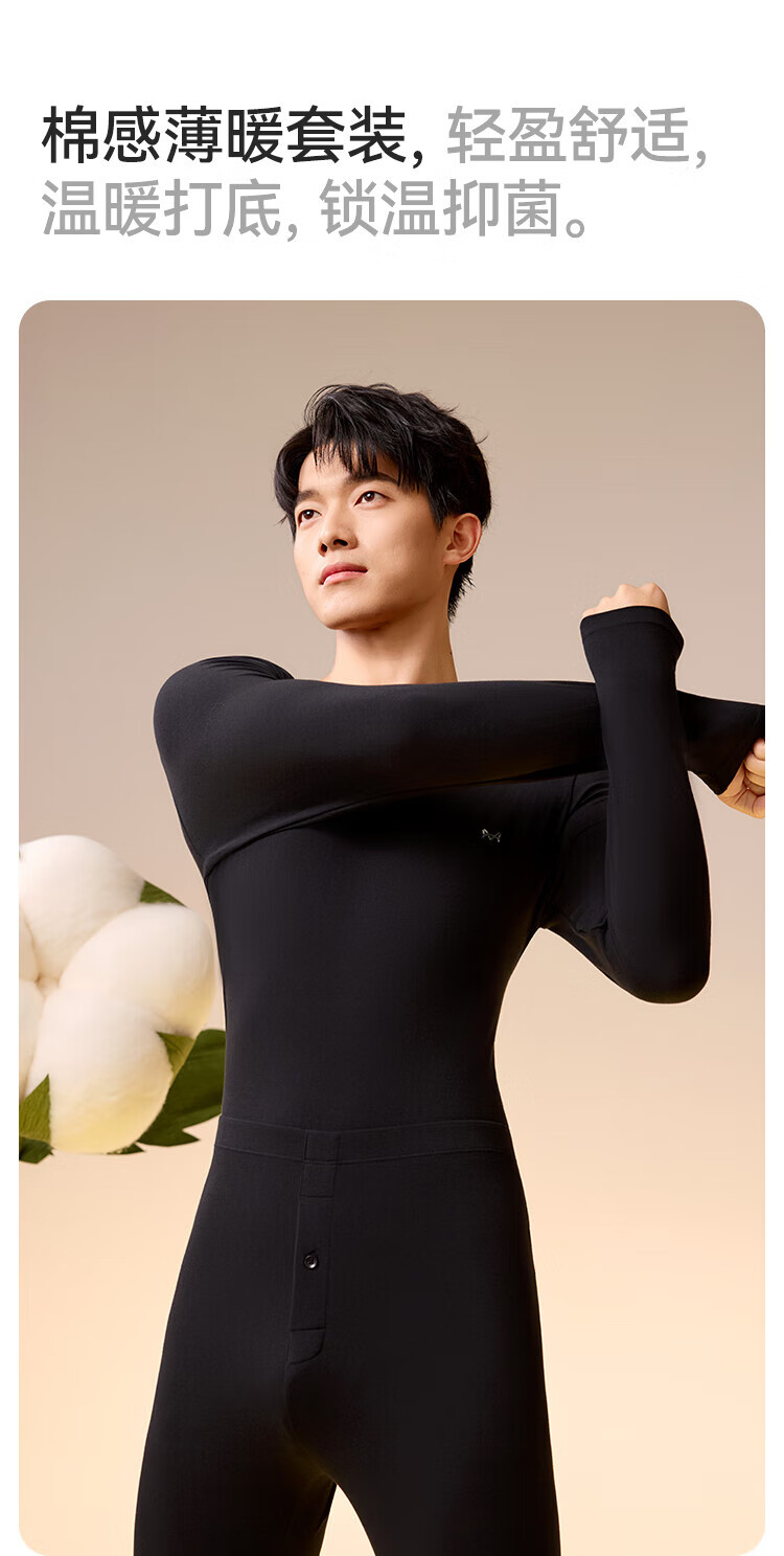 MiiOW Xinjiang Ropa interior térmica para hombres de algodón de fibra larga, ropa de otoño antibacteriana que no deja marcas y pantalones largos para hombres, traje de base de cuello redondo delgado