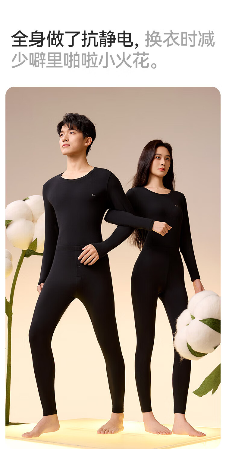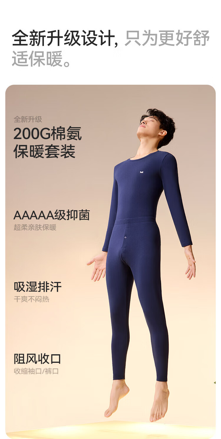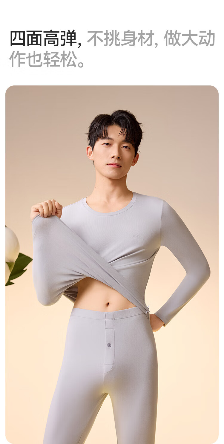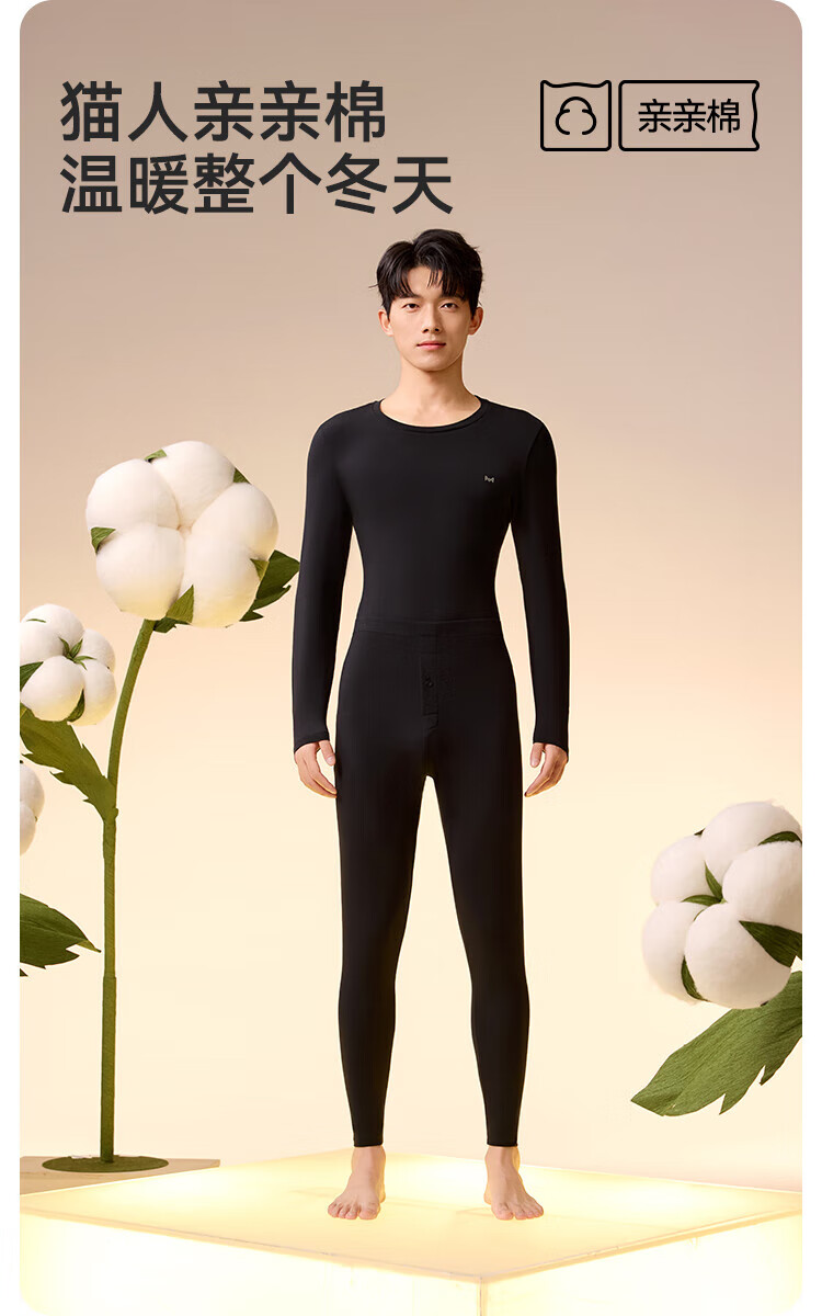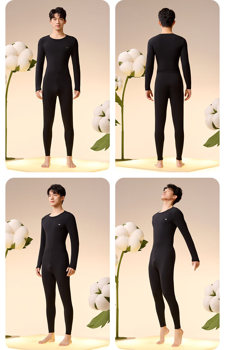 MiiOW Xinjiang Ropa interior térmica para hombres de algodón de fibra larga, ropa de otoño antibacteriana que no deja marcas y pantalones largos para hombres, traje de base de cuello redondo delgado