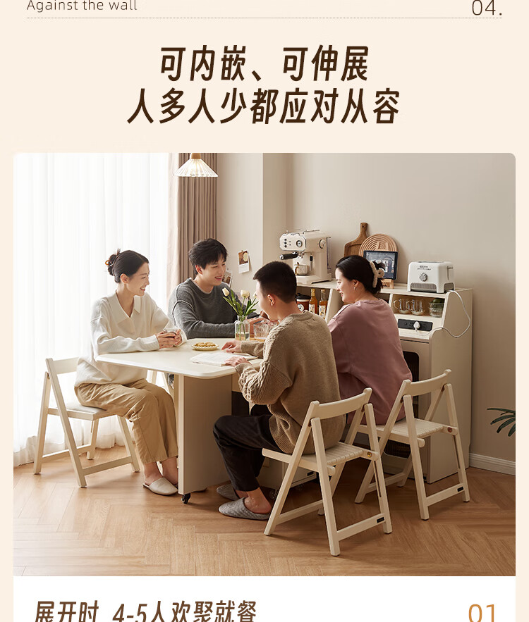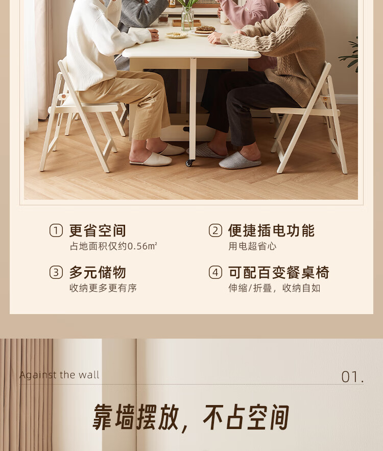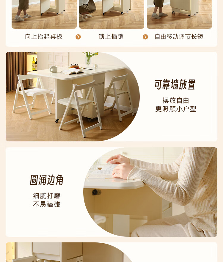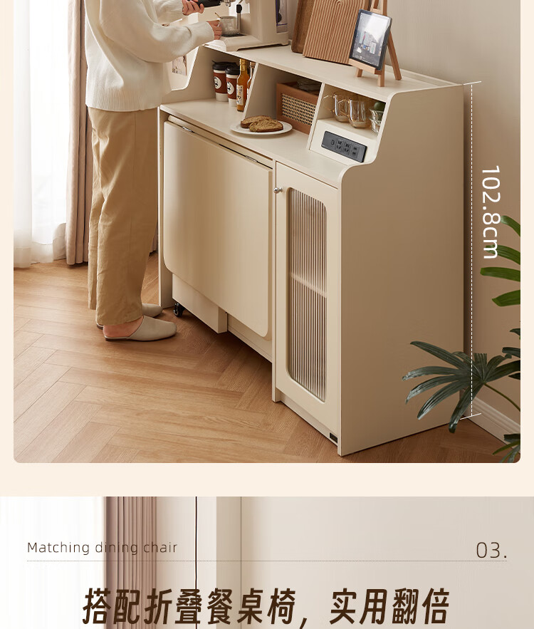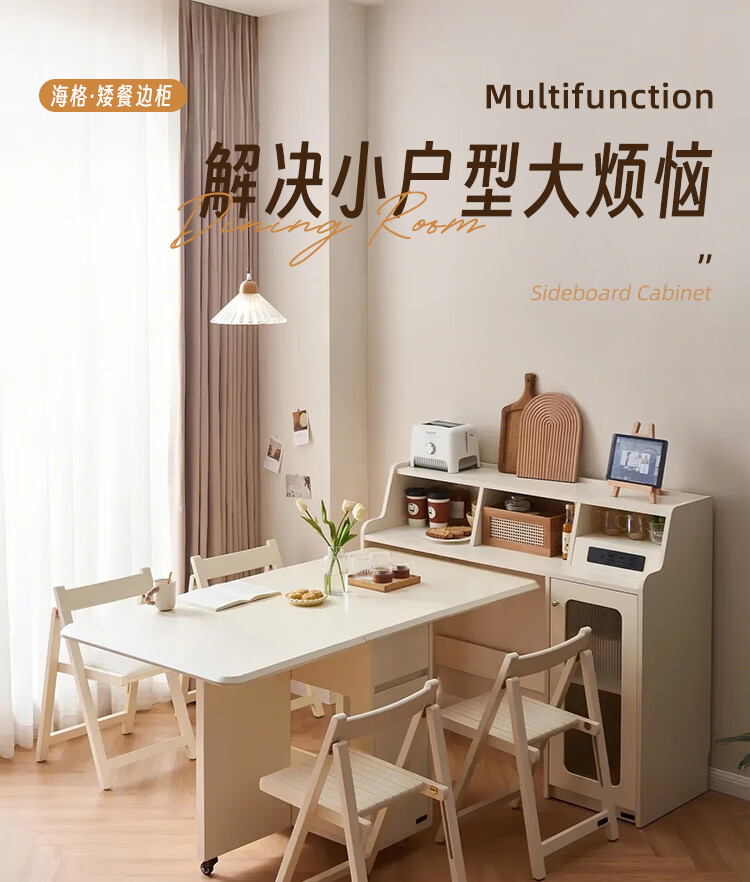 Quanyou Home Cream-style multi-functional sideboard integrated wall-mounted folding dining table combination for small apartments