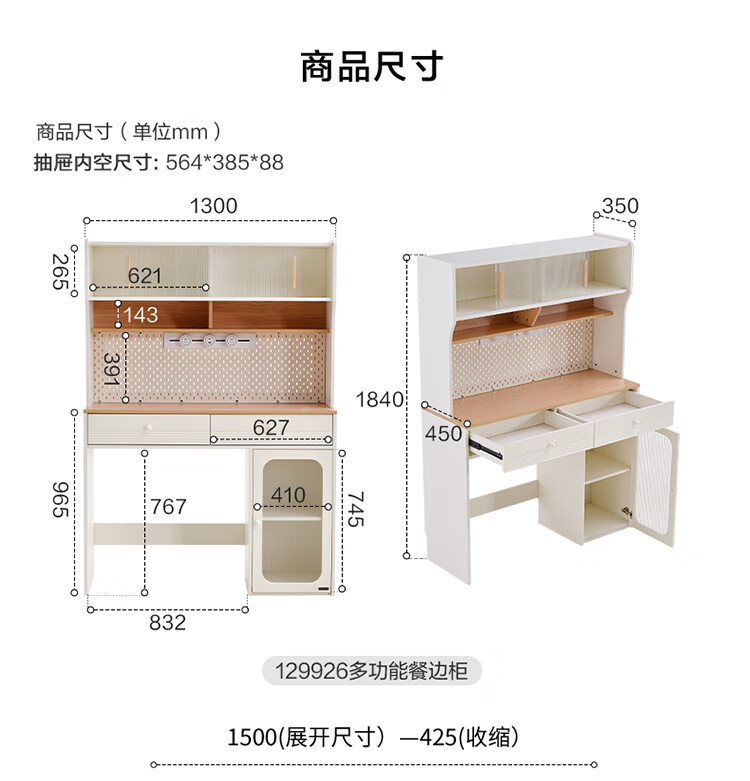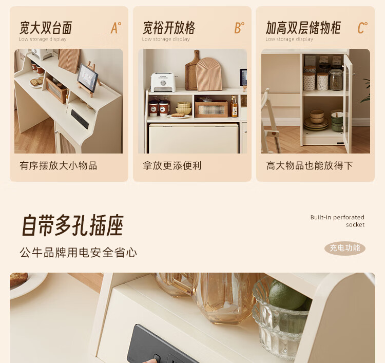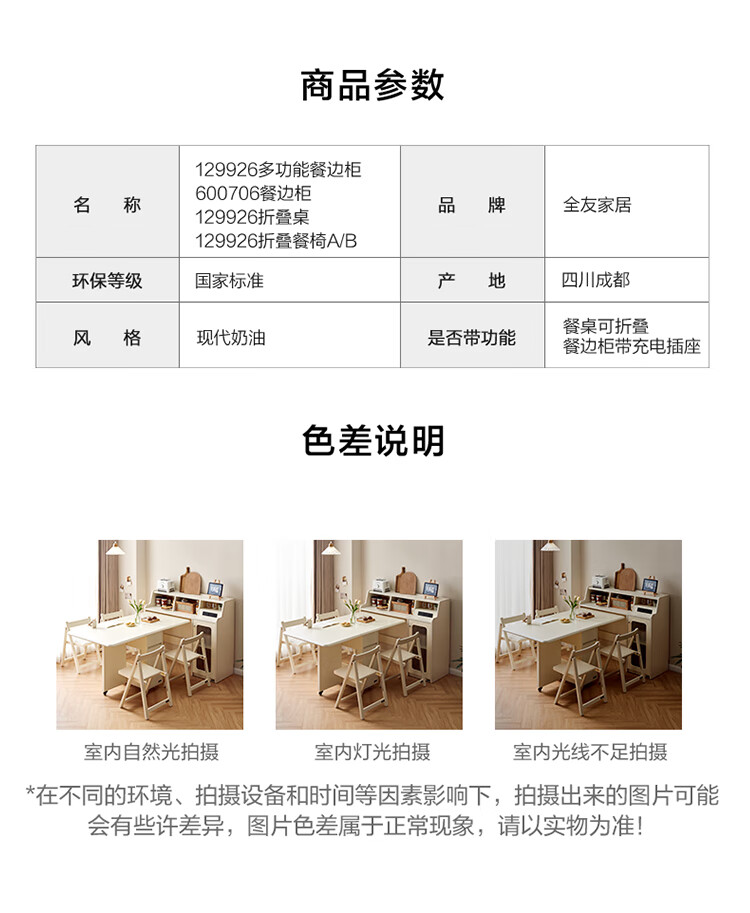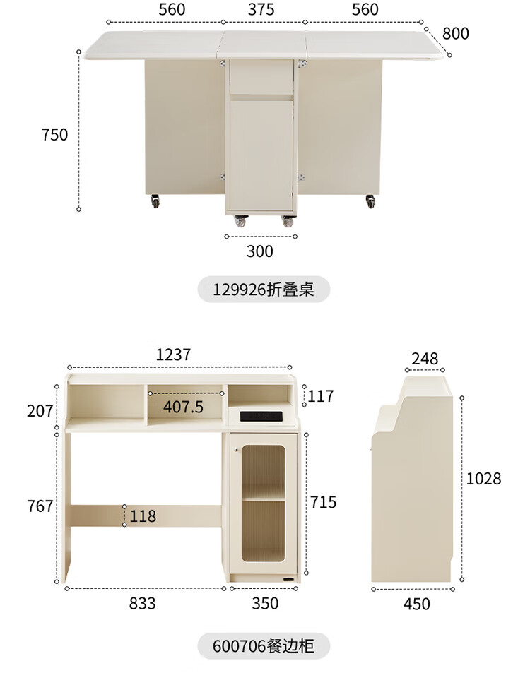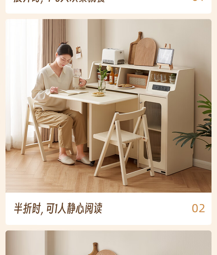 Quanyou Home Cream-style multi-functional sideboard integrated wall-mounted folding dining table combination for small apartments