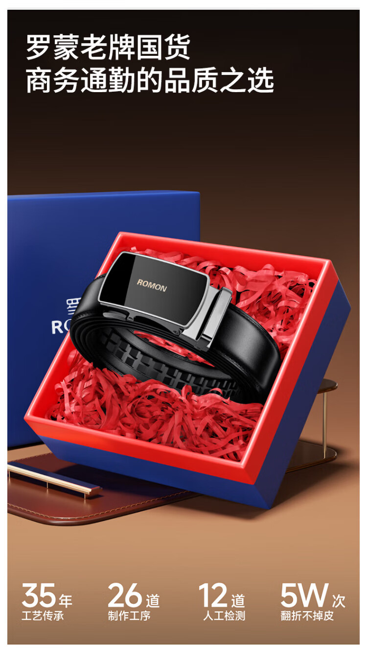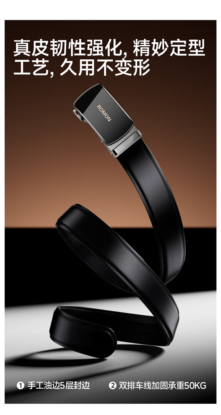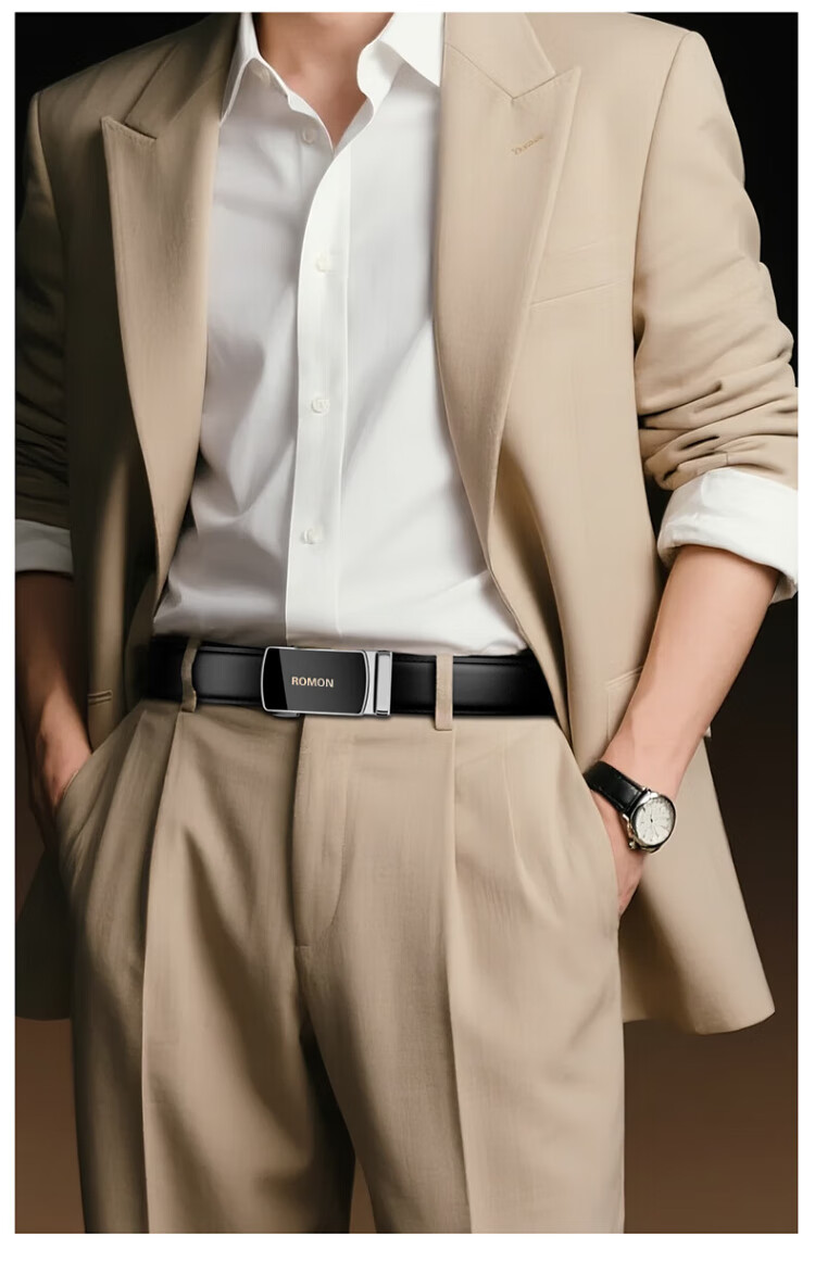 Romon belt men's genuine leather belt men's automatic buckle pure cowhide trouser belt casual and practical birthday gift for boyfriend and husband