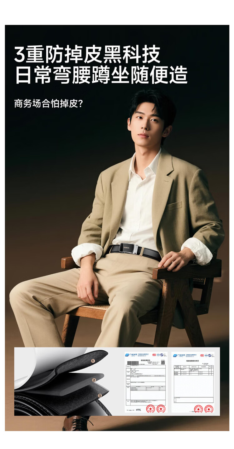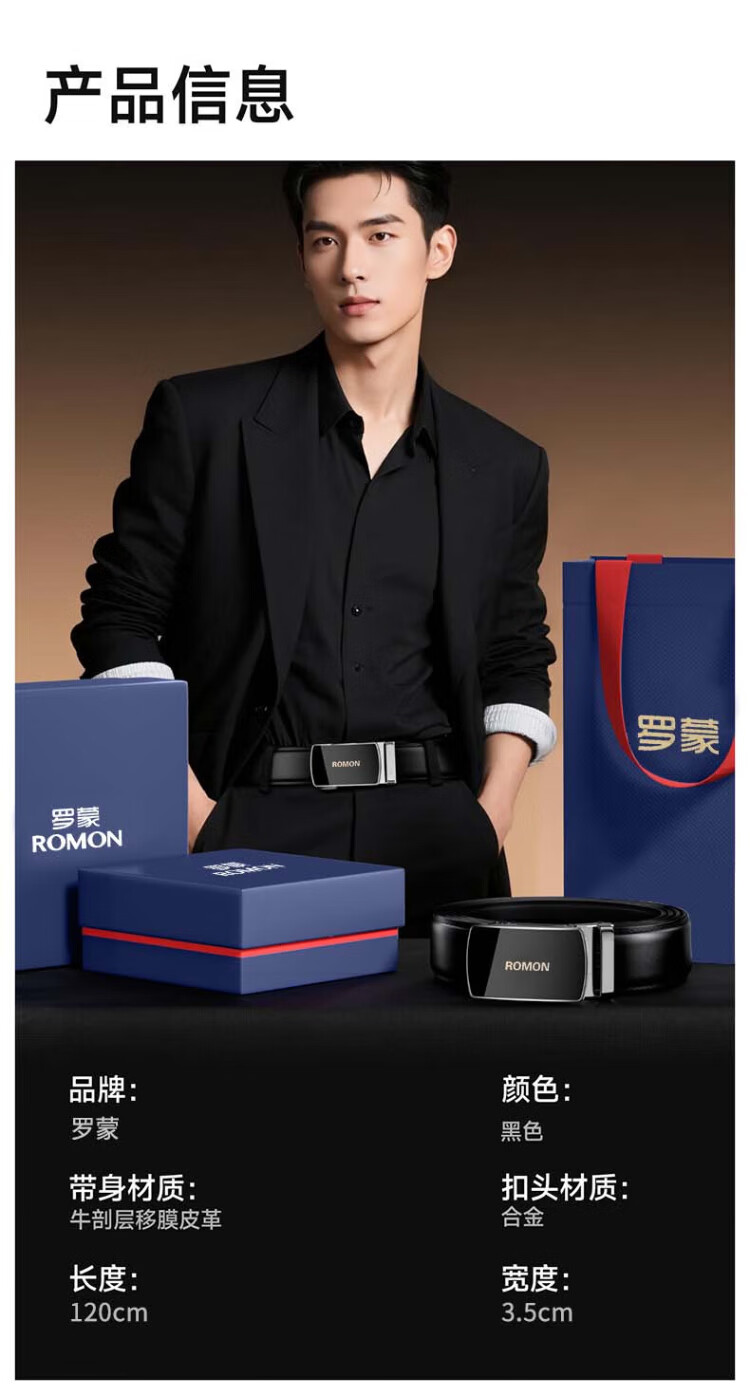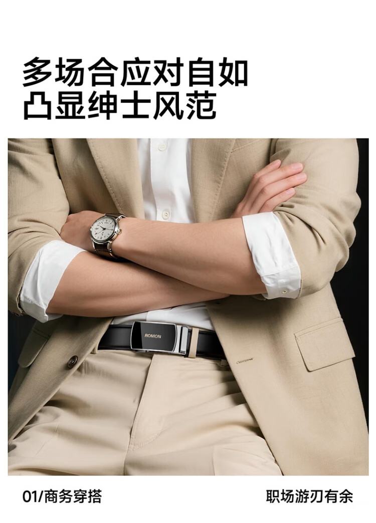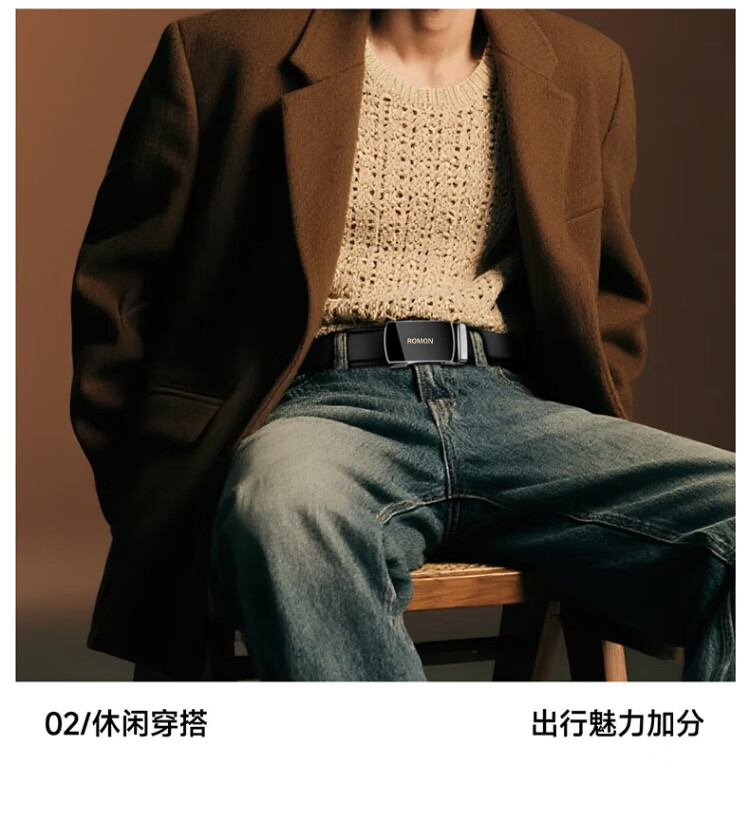 Romon belt men's genuine leather belt men's automatic buckle pure cowhide trouser belt casual and practical birthday gift for boyfriend and husband