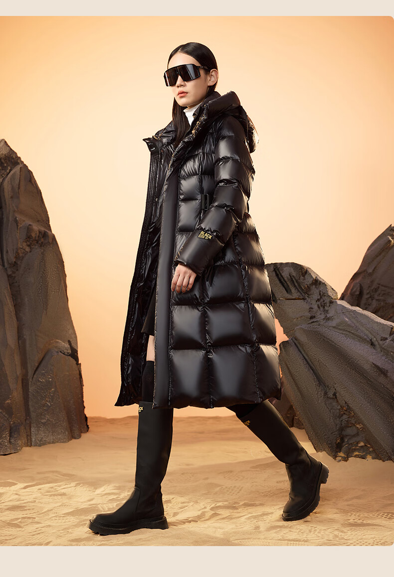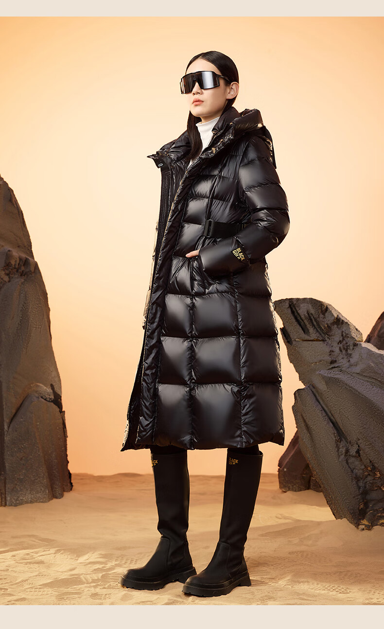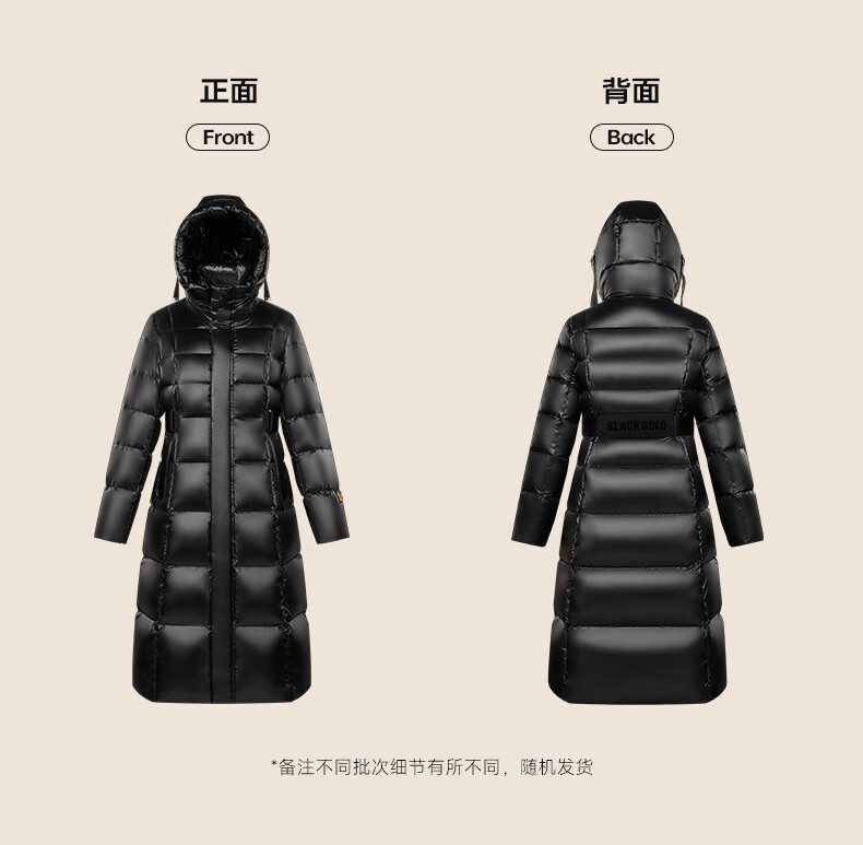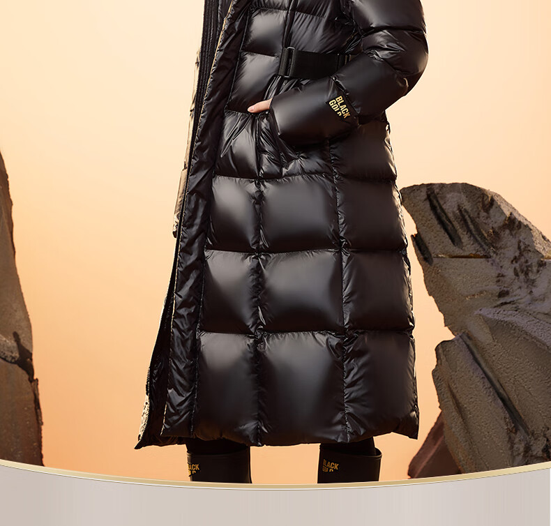 Govan Black Gold Goose Down Jacket Queen 2.0 Nine-lattice Long Women's Down Jacket Winter Waist Thick Jacket Black L