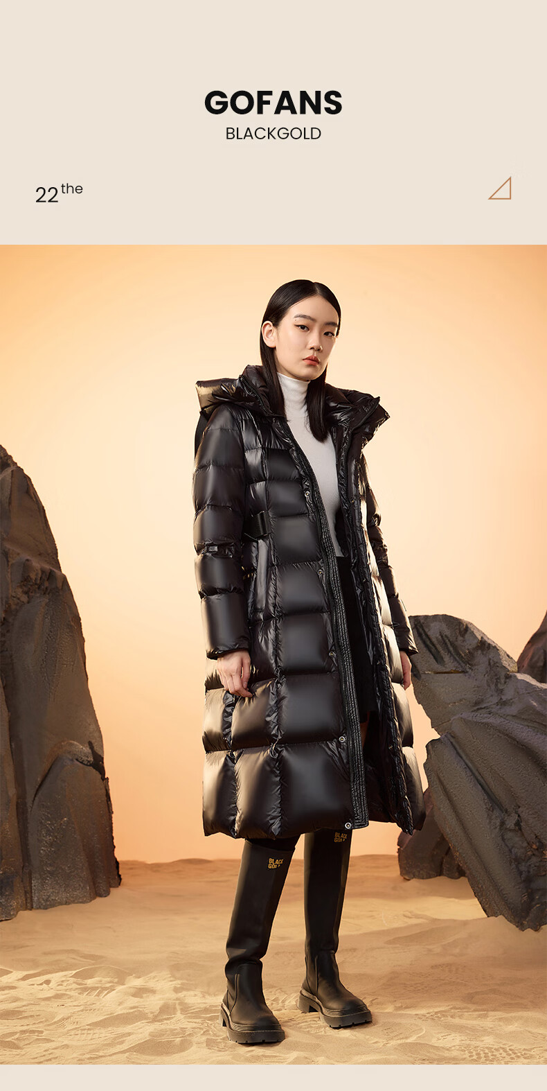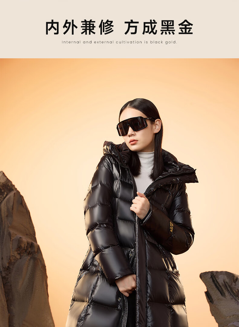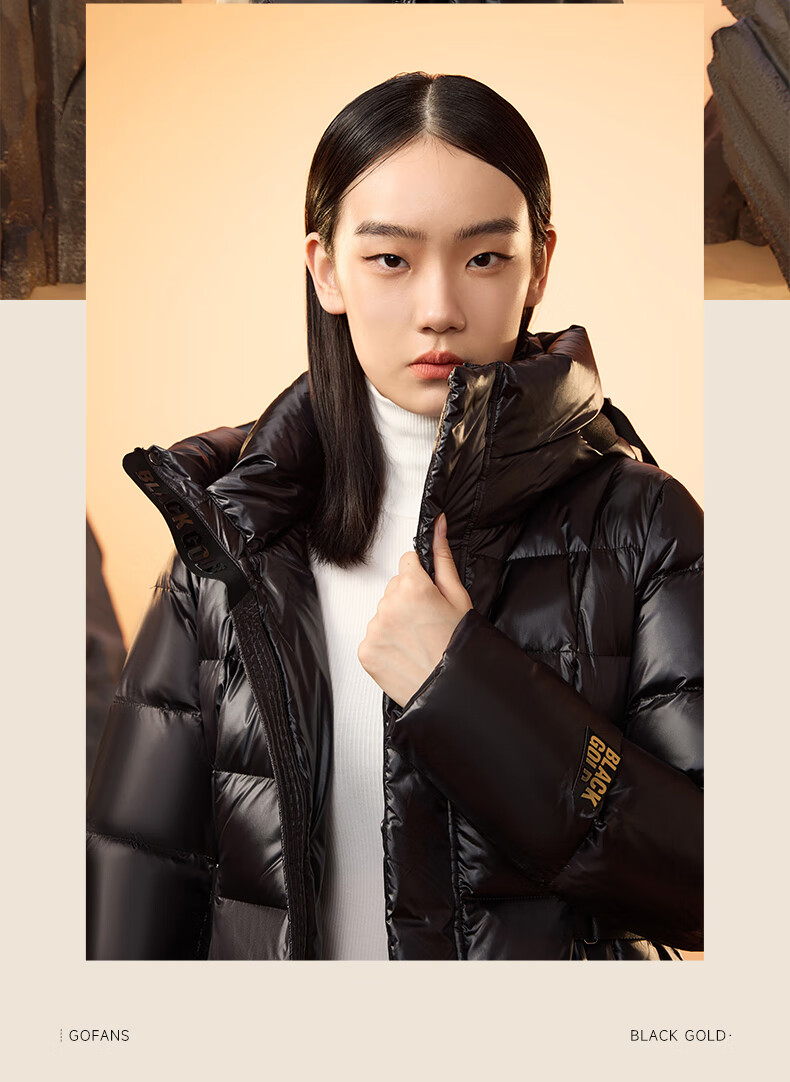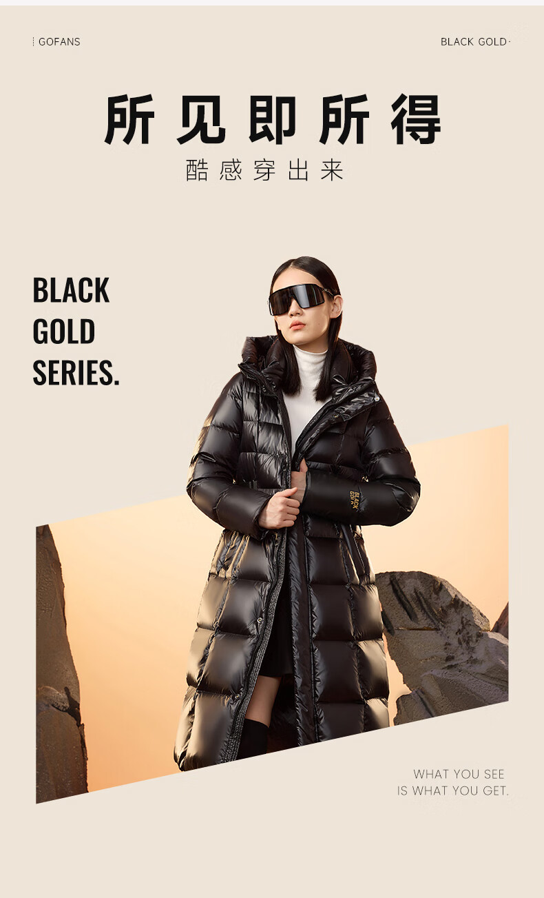 Govan Black Gold Goose Down Jacket Queen 2.0 Nine-lattice Long Women's Down Jacket Winter Waist Thick Jacket Black L