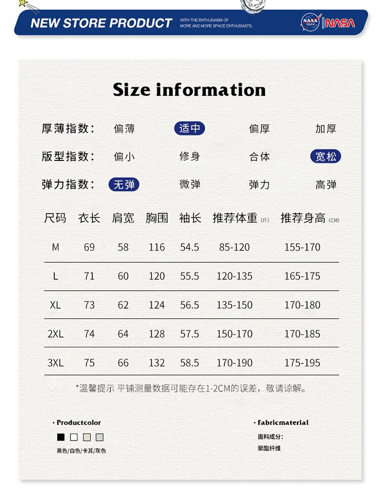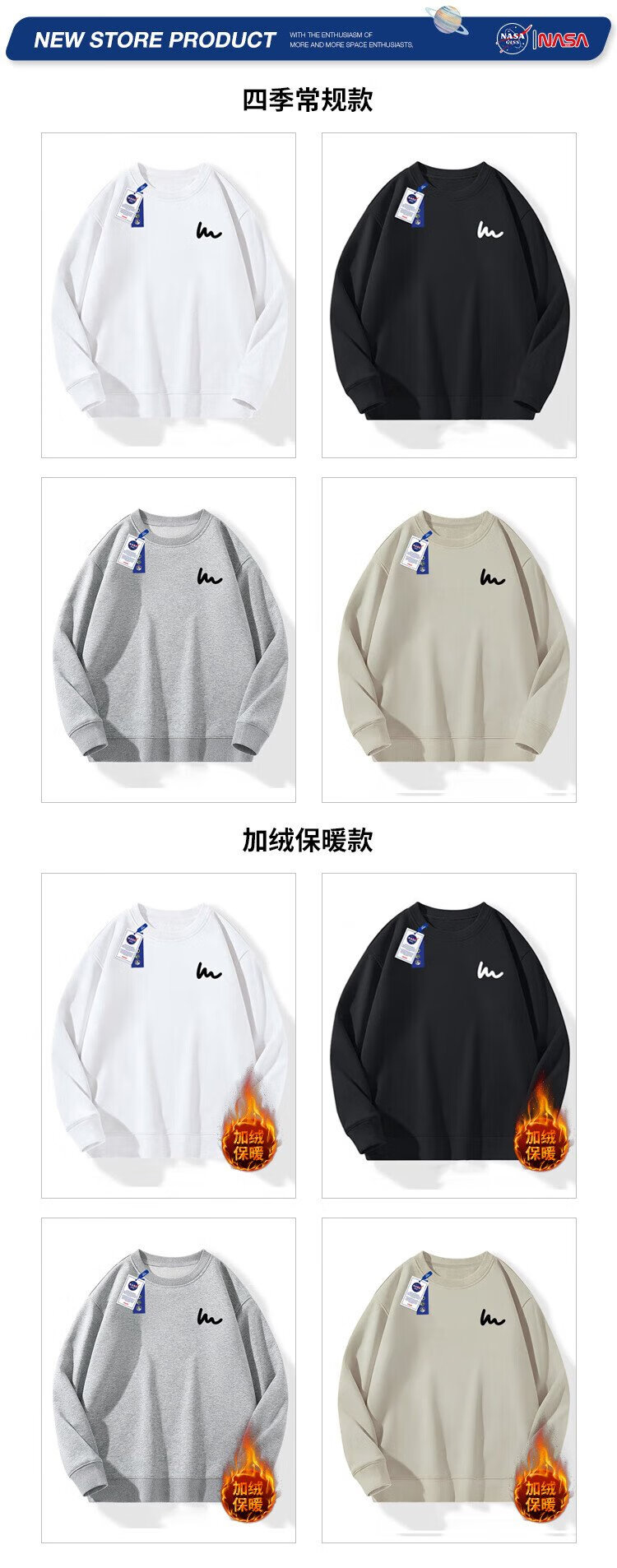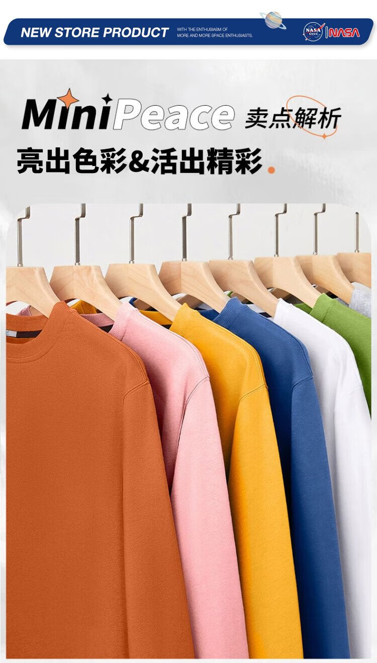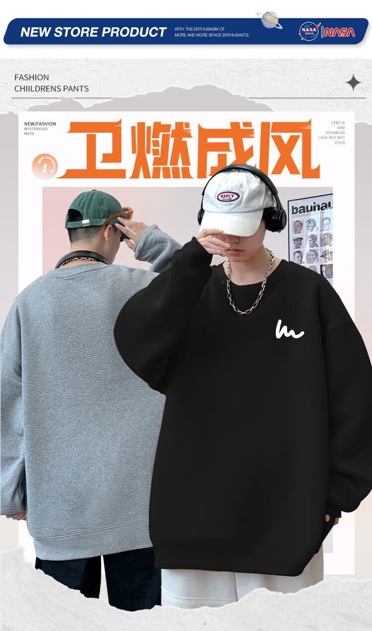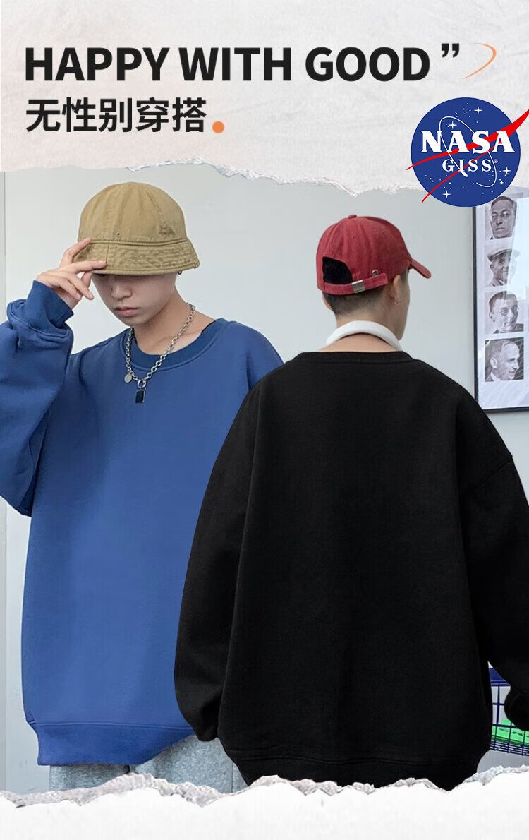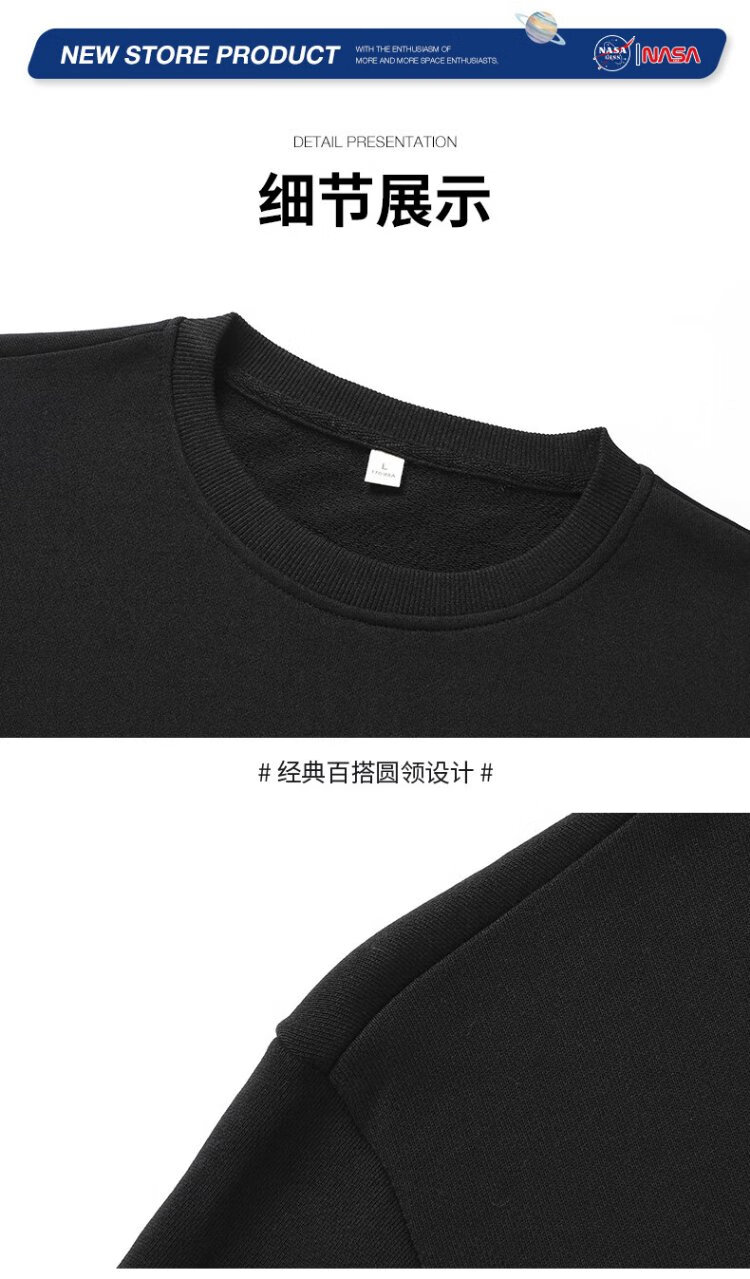 NASA GISS Sweater Men's Spring and Autumn Versatile Round Neck Long Sleeve T-Shirt Teen Couple Top Jacket Black XL