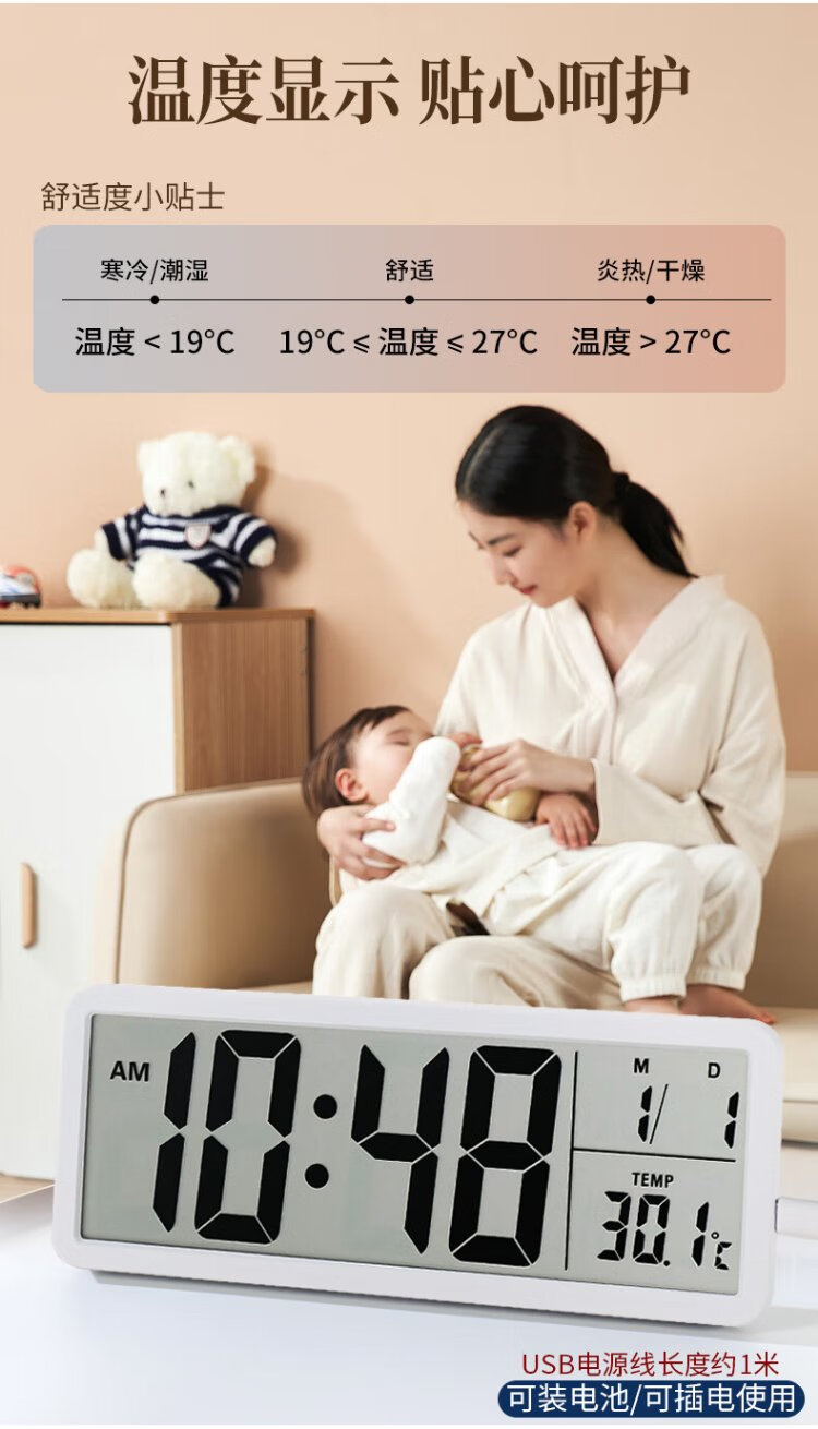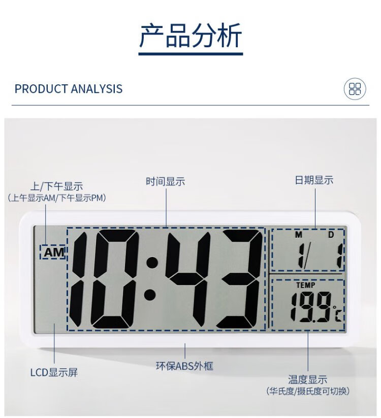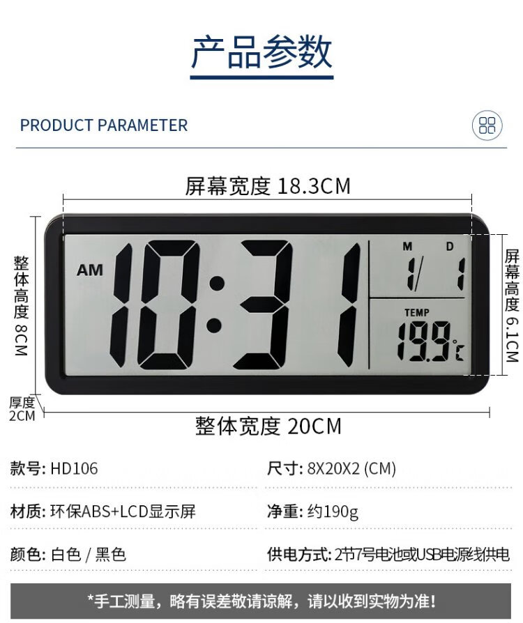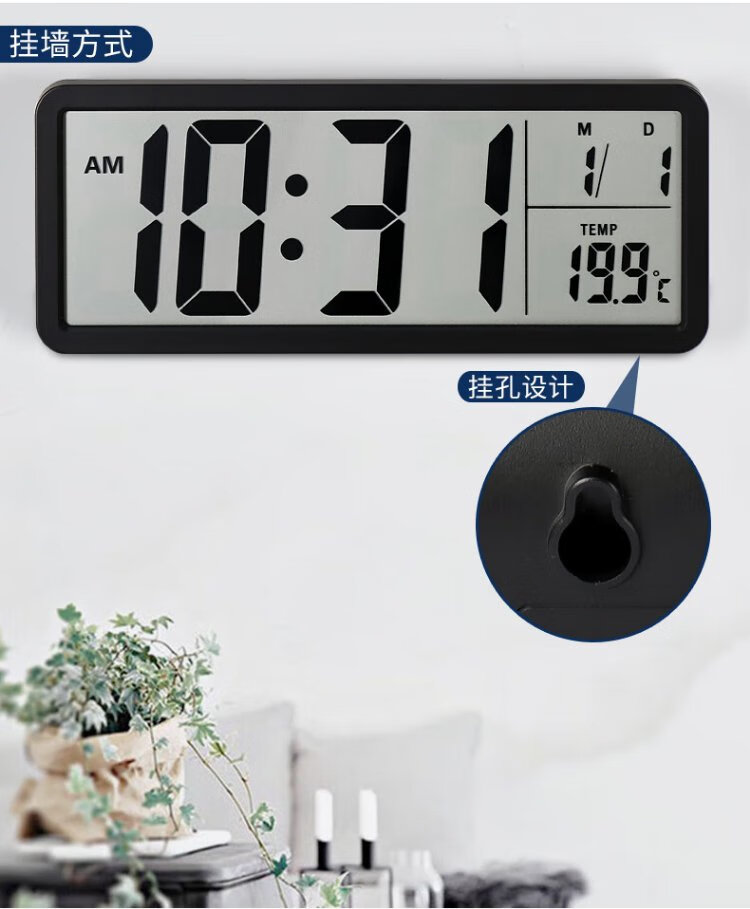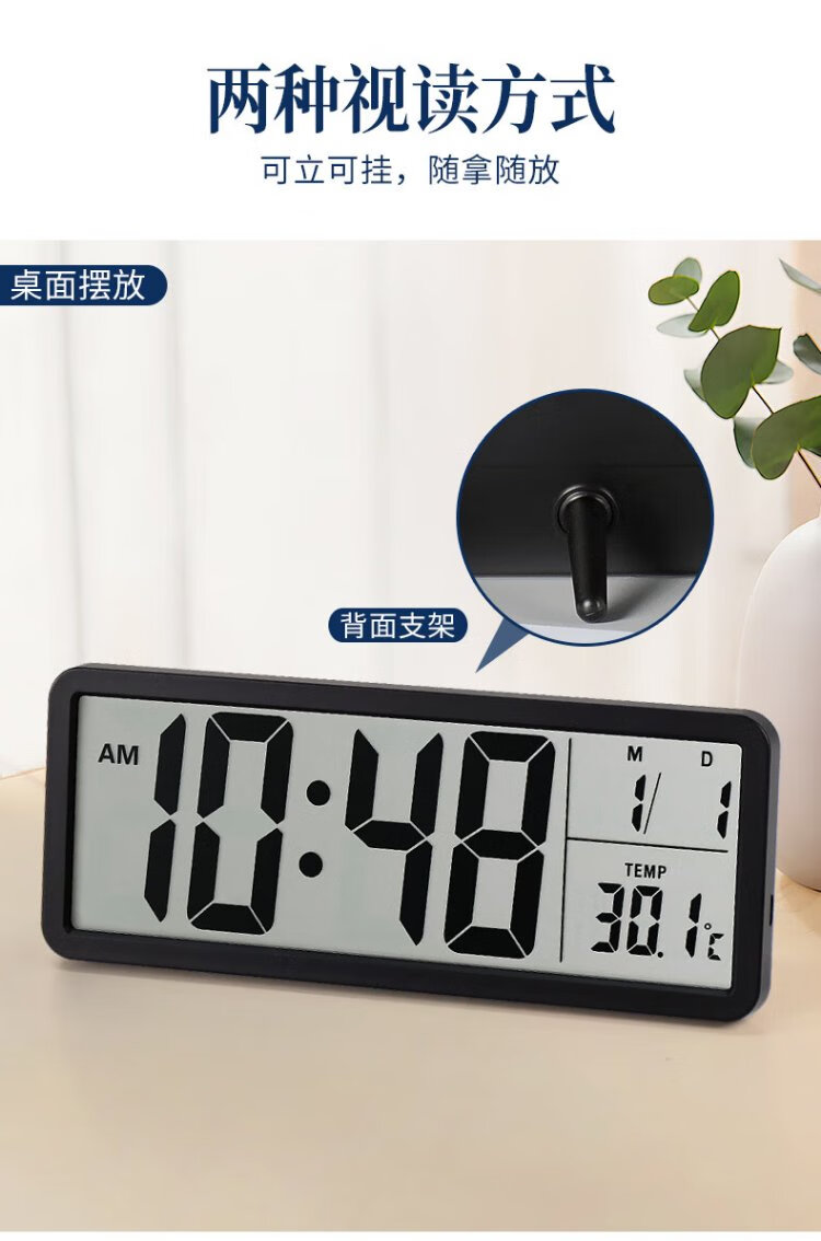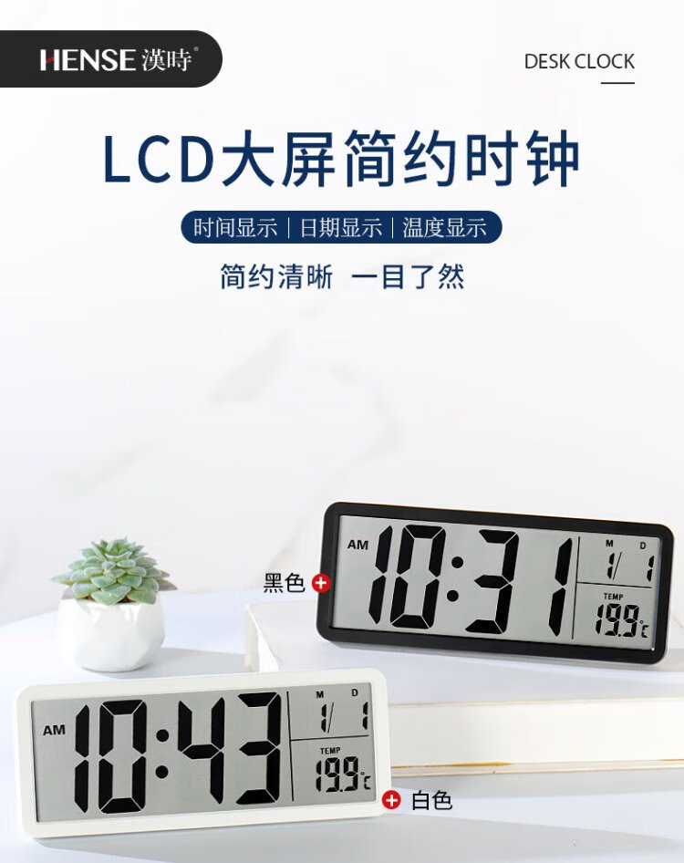 Hense Electronic Clock LCD Large Screen Desktop Clock Placement Large Digital Table Clock Temperature Wall Clock HD106 White