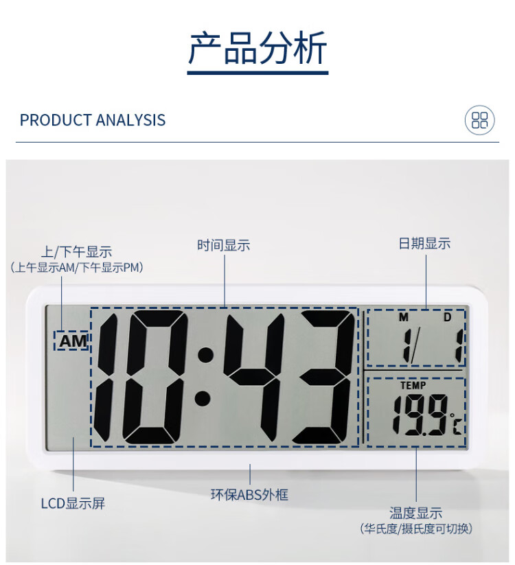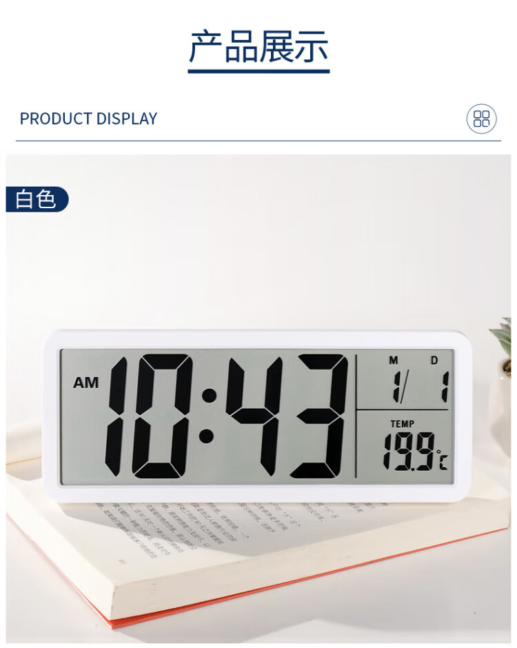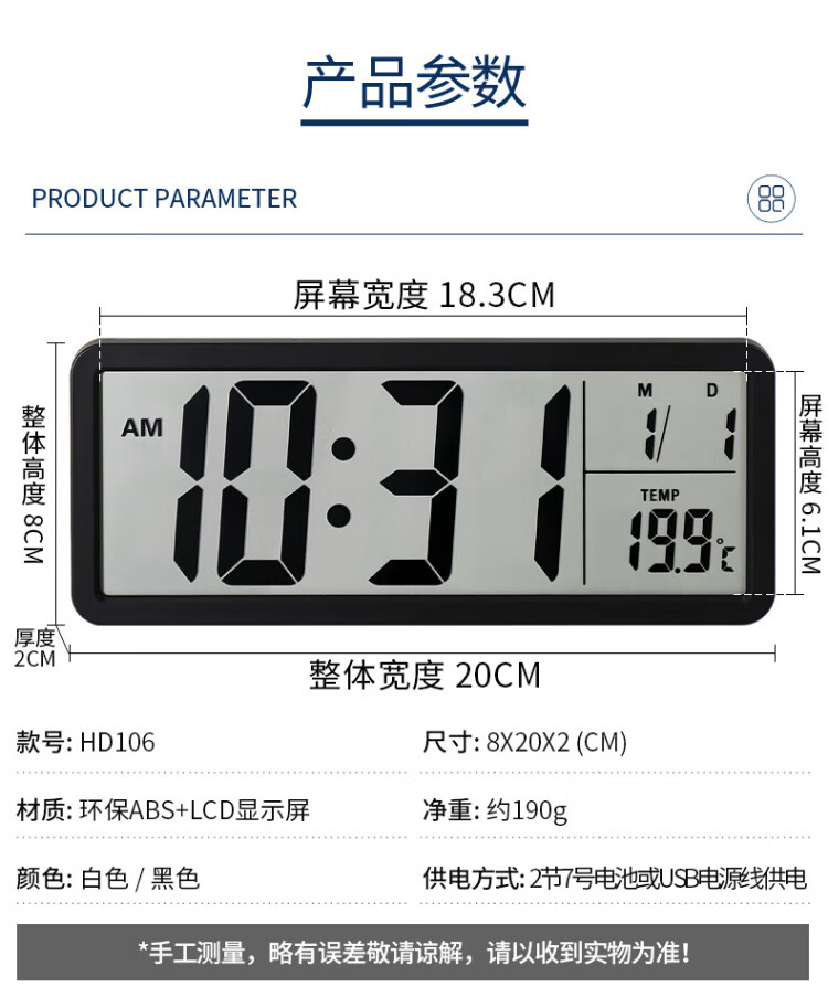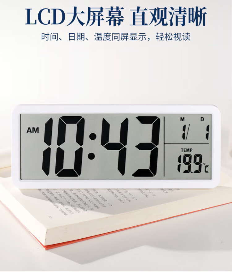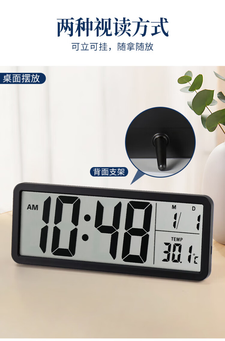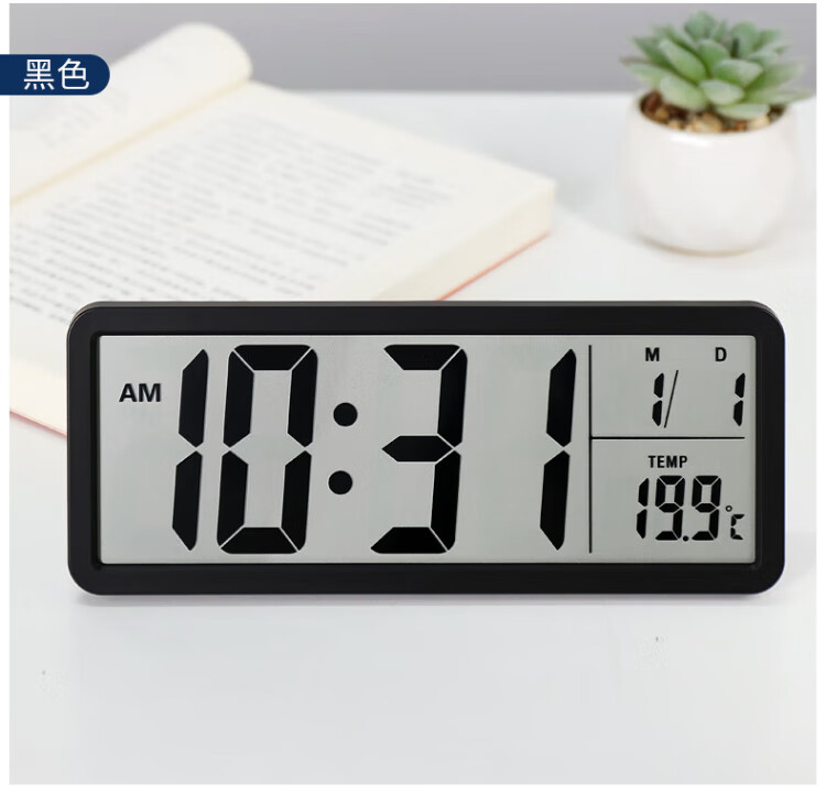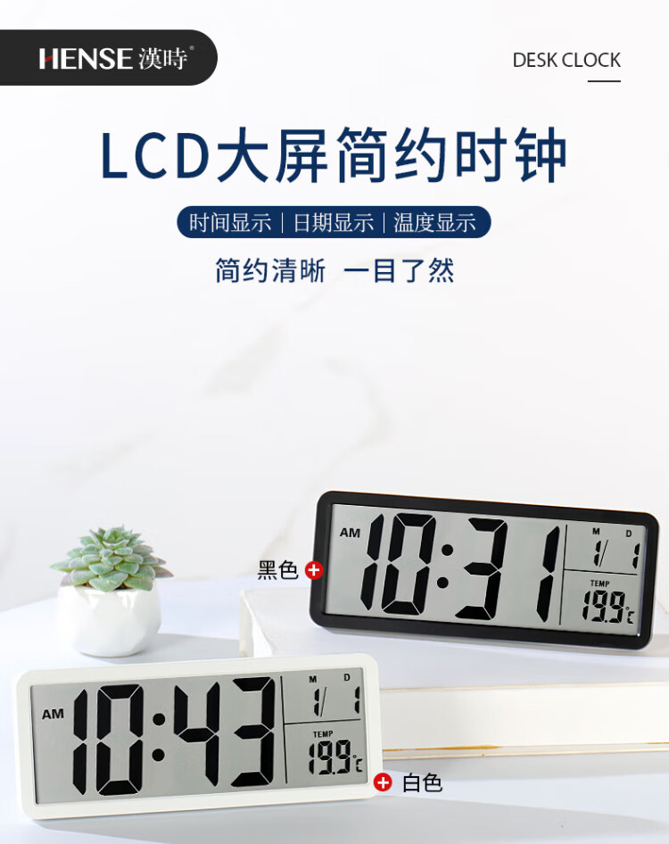 Hense electronic clock, fashionable and simple table clock, large screen desktop clock, temperature display, hanging watch, modern HD106 black