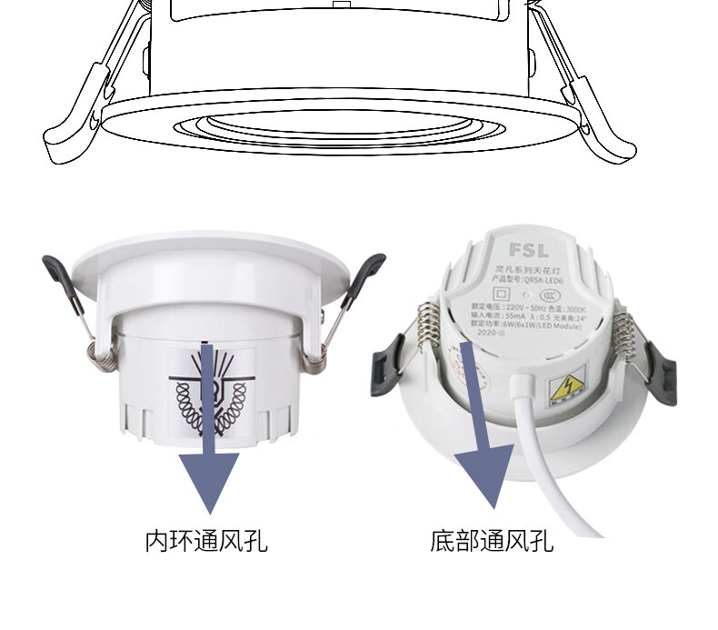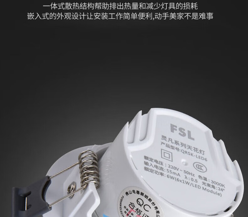 Foshan Lighting (FSL) LED spotlight ceiling light COB lamp bead angle adjustable background wall exhibition hall lighting deep anti-glare spotlight COB lamp bead 3W opening 55mm warm white light (4000K)