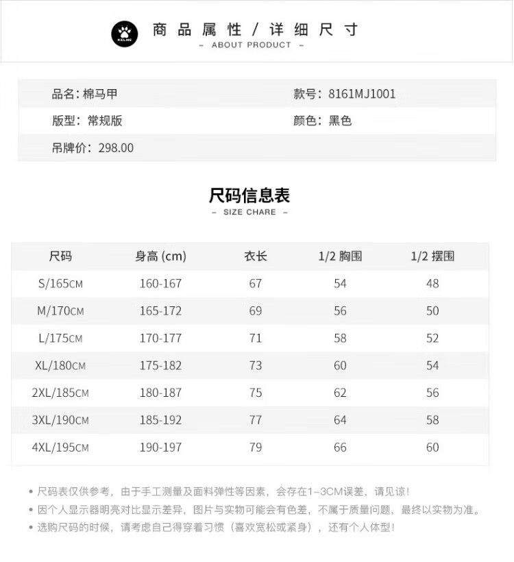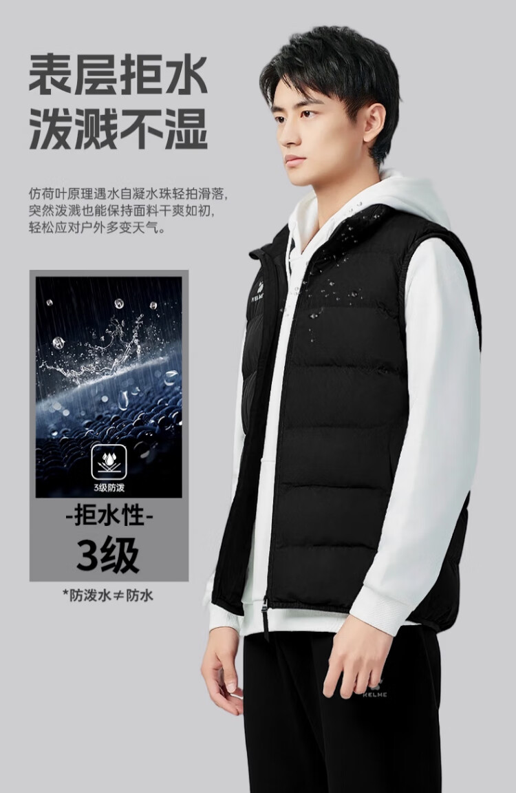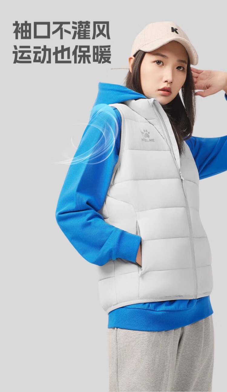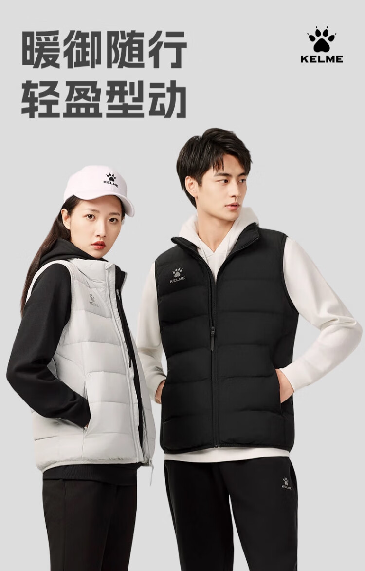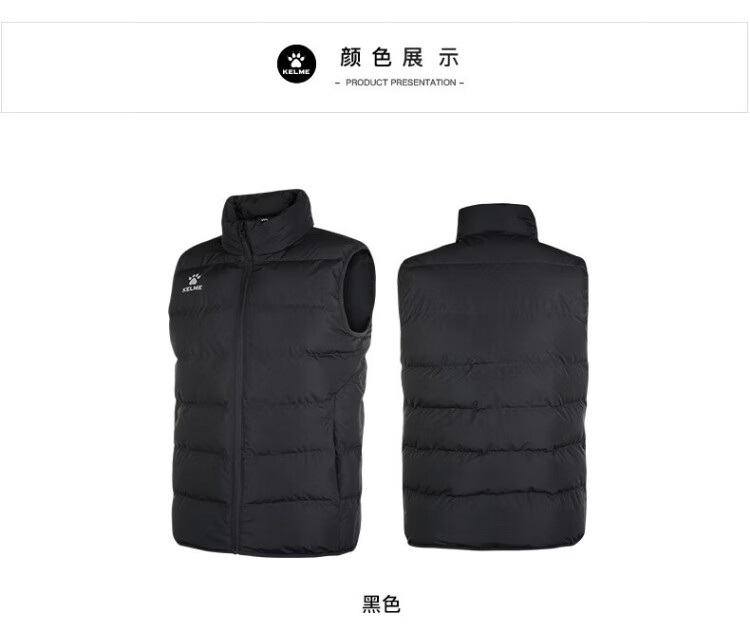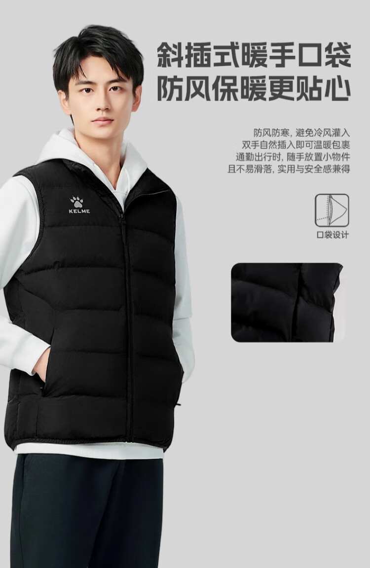KELME Sports Cotton Vest Men's Waistcoat Autumn and Winter Warm Commuting Sports Coldproof Vest Sleeveless Cotton Jacket Black 2XL