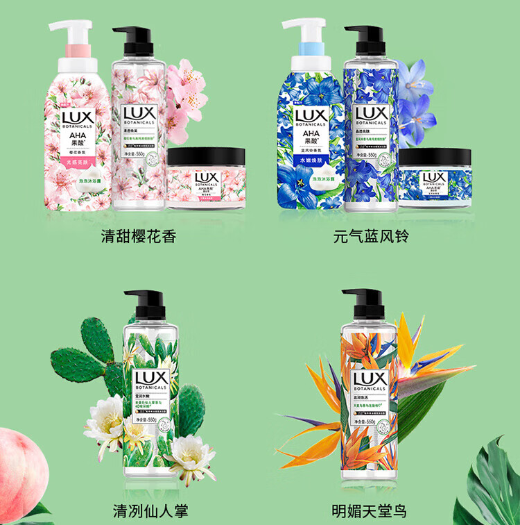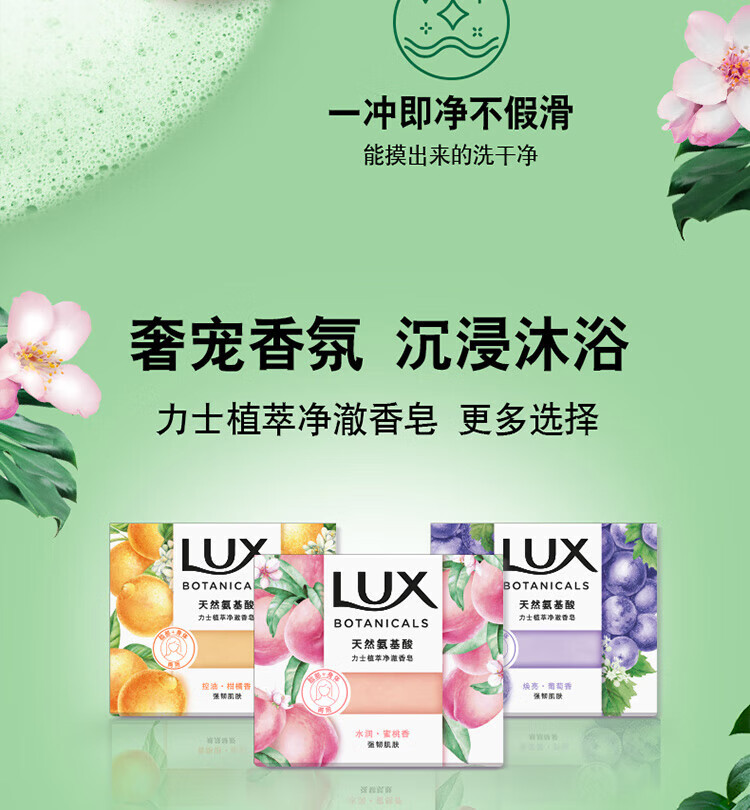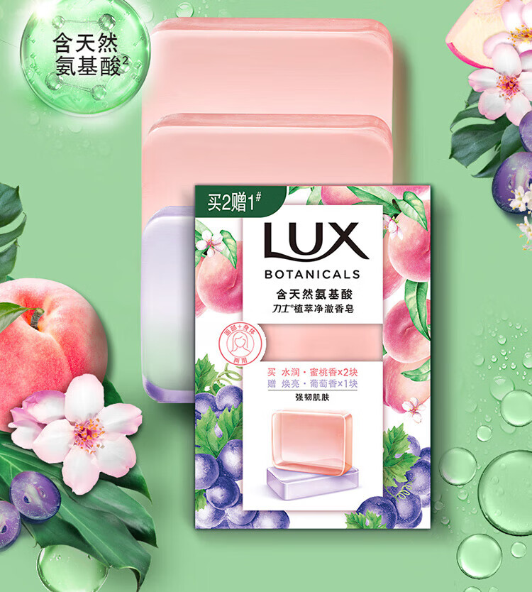 LUX Amino Acid Pure Crystal Soap Peach 95gx2 + Grape 95g