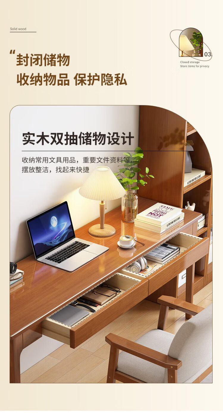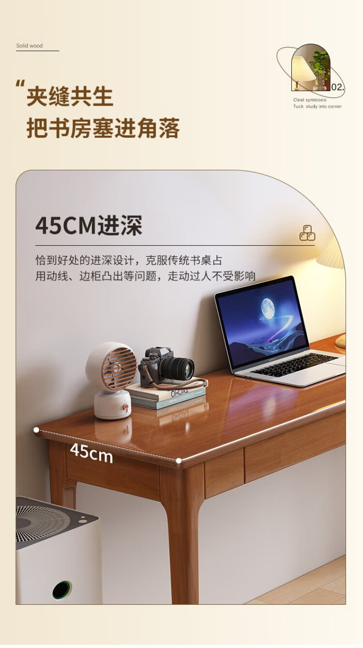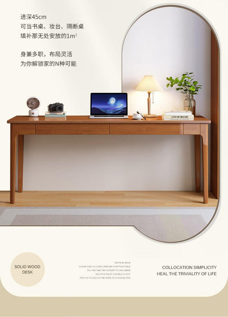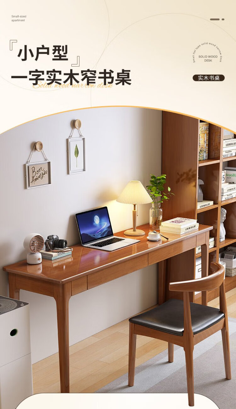 LUOSEN solid wood desk home small apartment office study table bedroom study ultra-narrow writing desk computer desk 1.2m single table