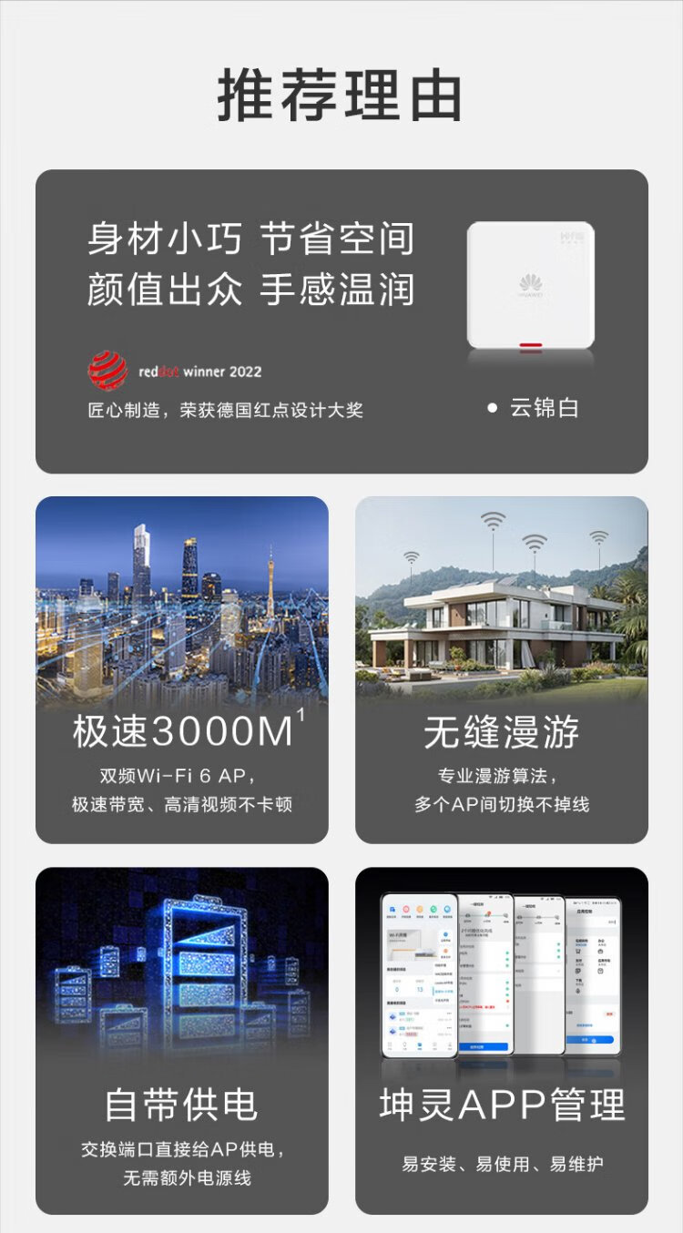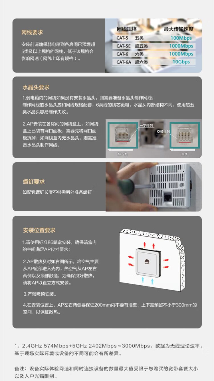 Huawei whole house WiFi6 set 2 ceiling AP+4 dual network port AP+8 port routing and switching all-in-one machine 3000M wireless AP Gigabit router AC+AP set simple white