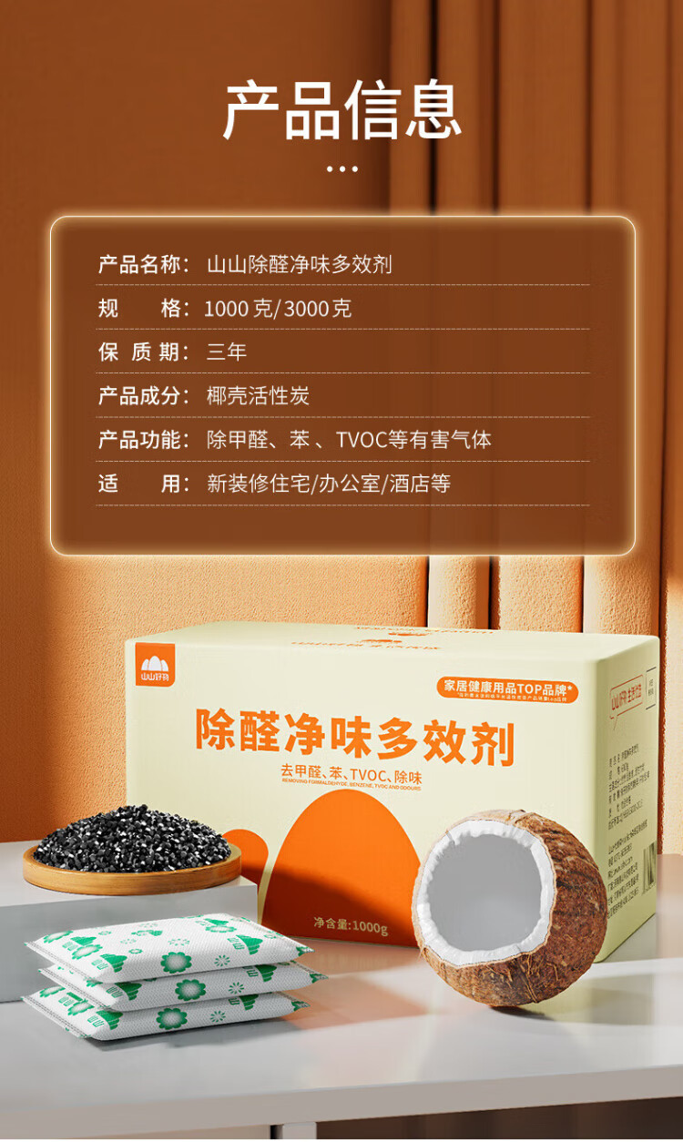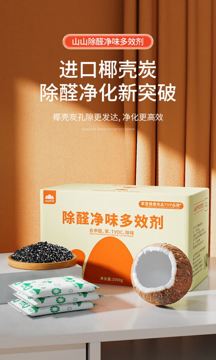 Shanshan formaldehyde removal activated carbon deodorization and formaldehyde removal new house bamboo charcoal household formaldehyde removal orange coconut shell charcoal 3000g