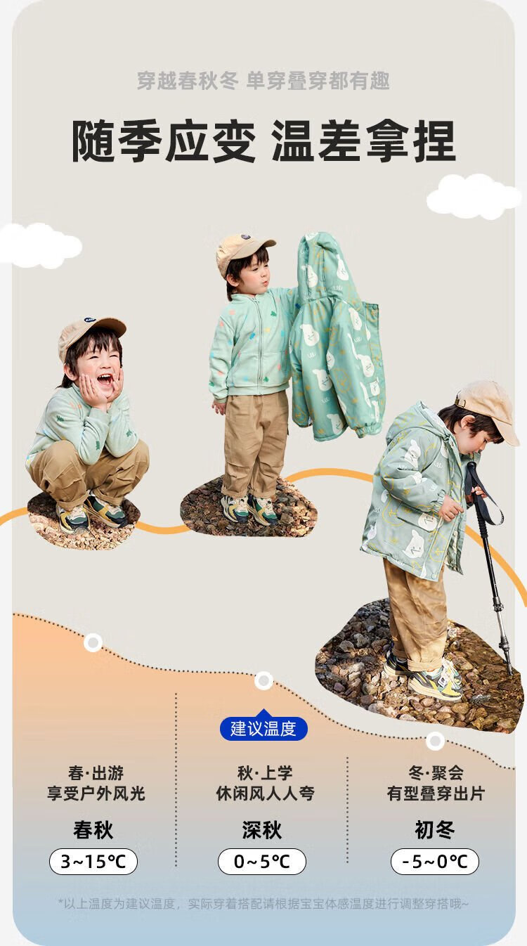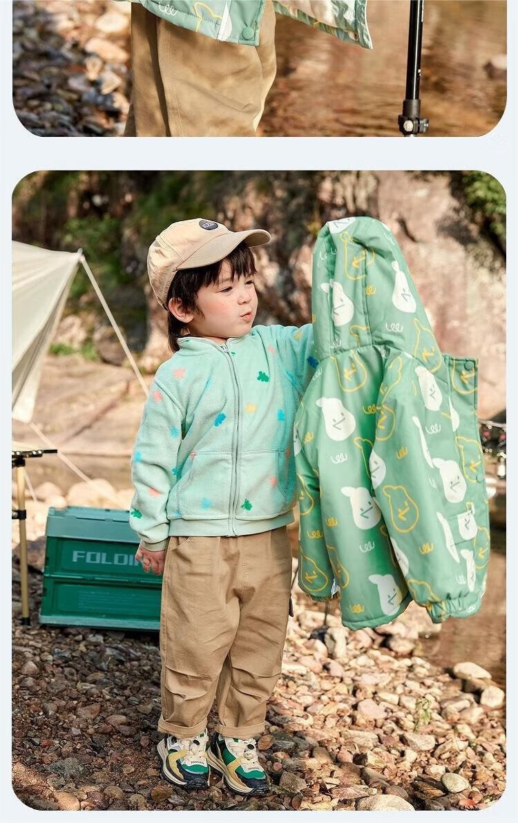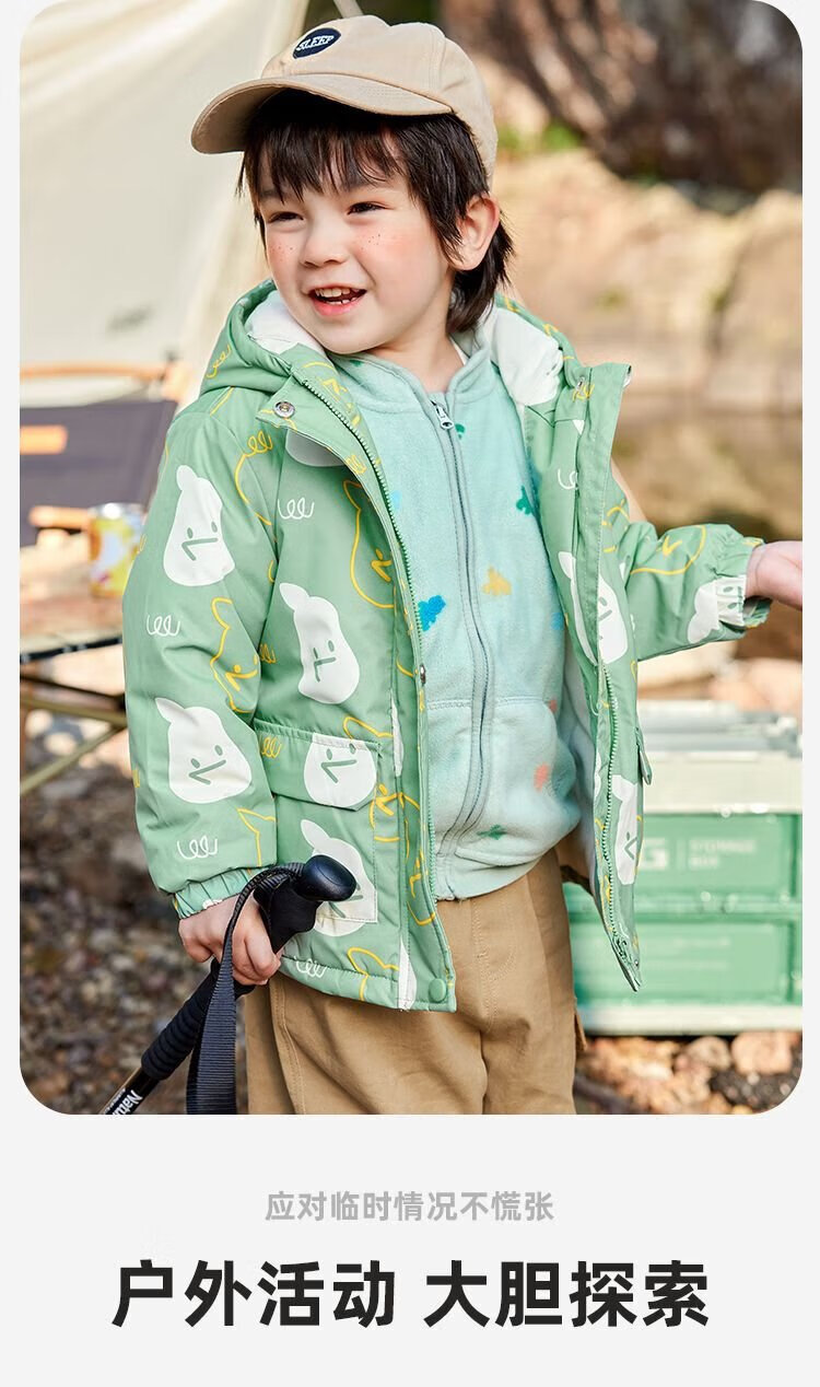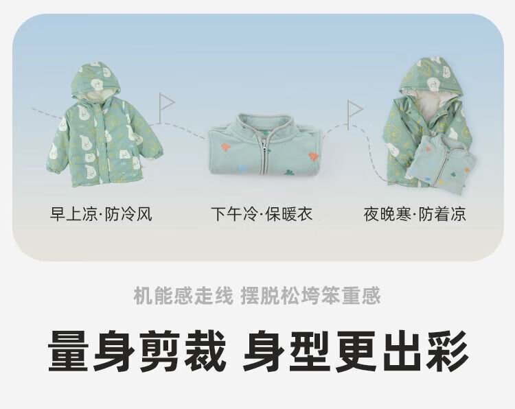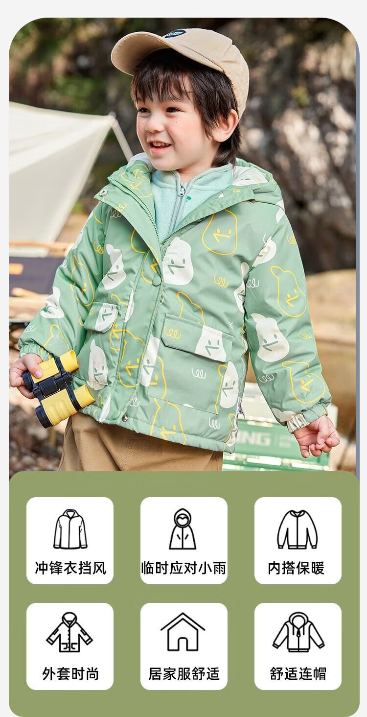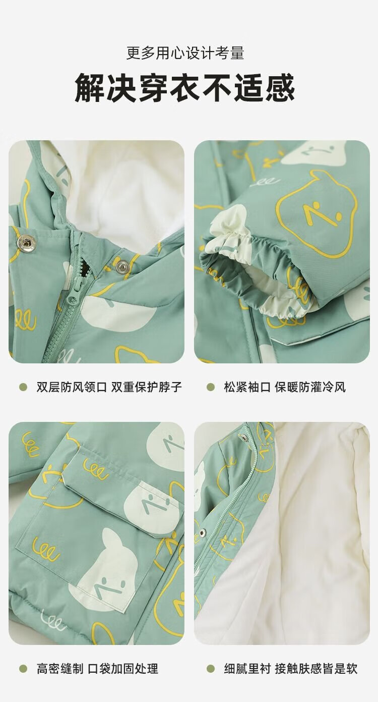 Dudujia baby windproof two-piece set autumn and winter children's coat three-in-one warm boy's top girl's children's clothing mint green